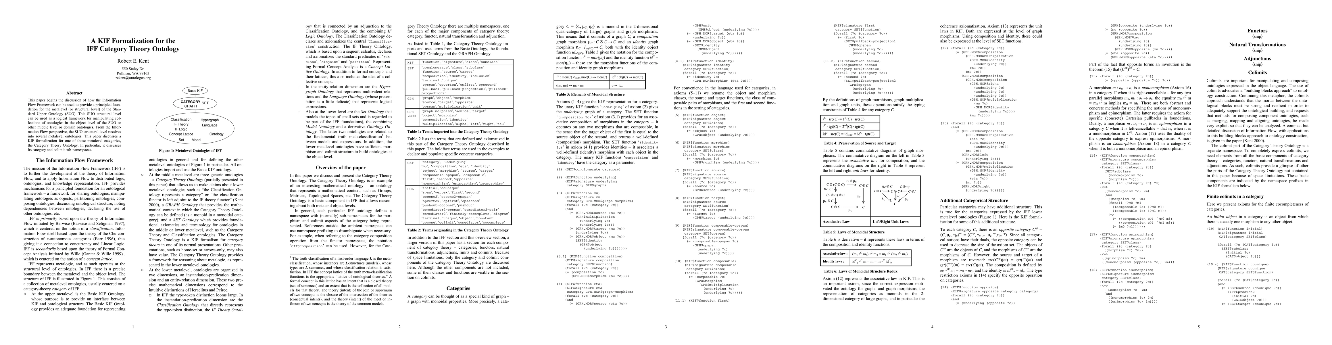 This paper begins the discussion of how the Information Flow Framework can be used to provide a principled foundation for the metalevel (or structural level) of the Standard Upper Ontology (SUO). This SUO structural level can be used as a logical framework for manipulating collections of ontologies in the object level of the SUO or other middle level or domain ontologies. From the Information Flow perspective, the SUO structural level resolves into several metalevel ontologies. This paper discusses a KIF formalization for one of those metalevel categories, the Category Theory Ontology. In particular, it discusses its category and colimit sub-namespaces.
