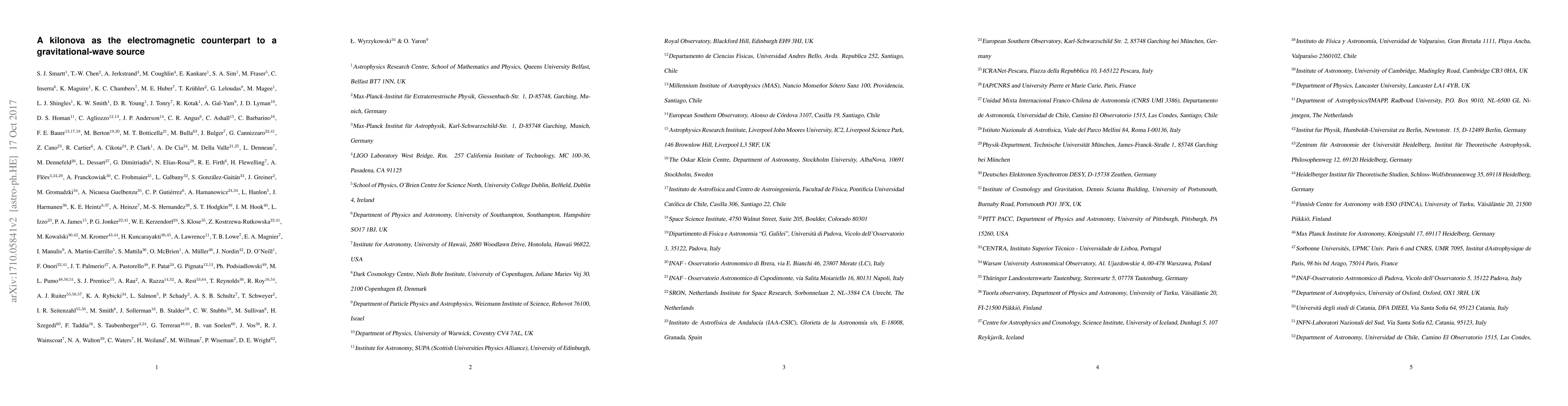 This paper reports the electromagnetic counterpart to the gravitational wave source GW170817 from a binary neutron star merger, identifying a rapidly fading kilonova in galaxy NGC4993. The kilonova's parameters match theoretical predictions, indicating it is powered by radioactive decay of r-process elements, confirming neutron star mergers as sources of gravitational waves and r-process nucleosynthesis.