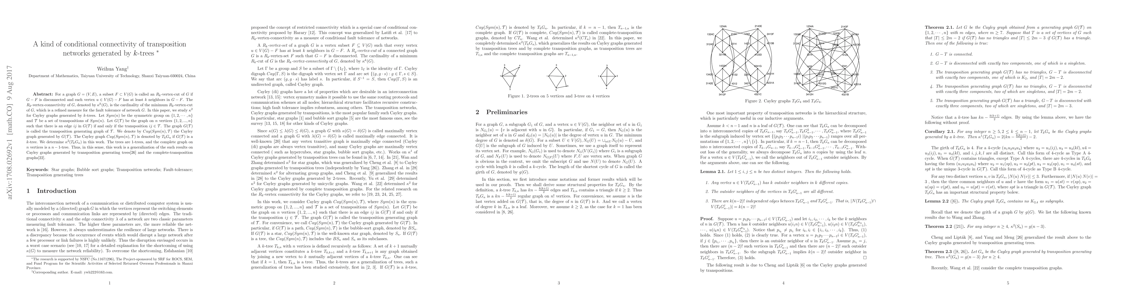 This paper studies the fault tolerance of Cayley graphs generated by k-trees, focusing on their 2-vertex-connectivity (κ^2). It introduces transposition generating graphs and defines κ^2 for these graphs, generalizing previous findings on tree and complete-transposition-graph cases. The research determines κ^2(T_kG_n) for k-tree transposition graphs.