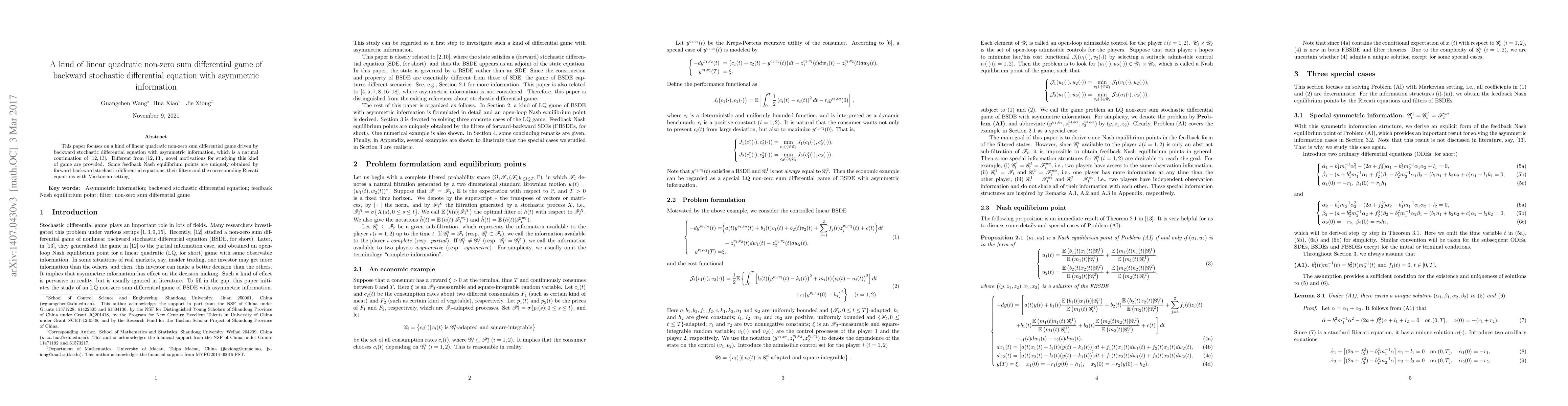 This paper focuses on a kind of linear quadratic non-zero sum differential game driven by backward stochastic differential equation with asymmetric information, which is a natural continuation of Wang and Yu [IEEE TAC (2010) 55: 1742-1747, Automatica (2012) 48: 342-352]. Different from Wang and Yu [IEEE TAC (2010) 55: 1742-1747, Automatica (2012) 48: 342-352], novel motivations for studying this kind of game are provided. Some feedback Nash equilibrium points are uniquely obtained by forward-backward stochastic differential equations, their filters and the corresponding Riccati equations with Markovian setting.