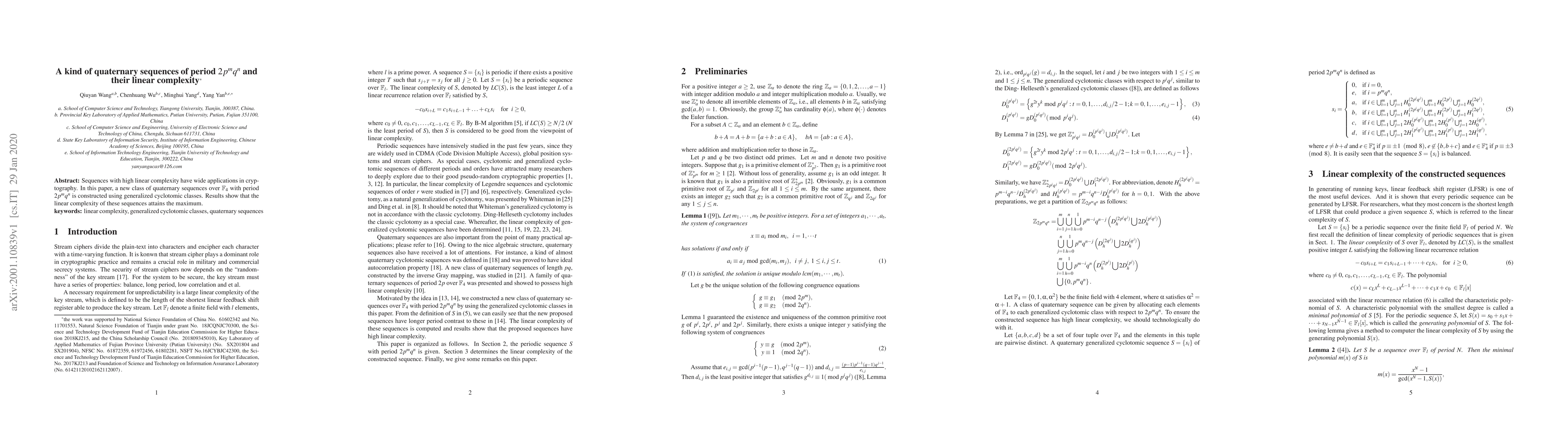 This paper constructs a new class of quaternary sequences over $\mathbb{F}_4$ with period $2p^mq^n$ using generalized cyclotomic classes, demonstrating that these sequences achieve maximum linear complexity, valuable for cryptographic applications.