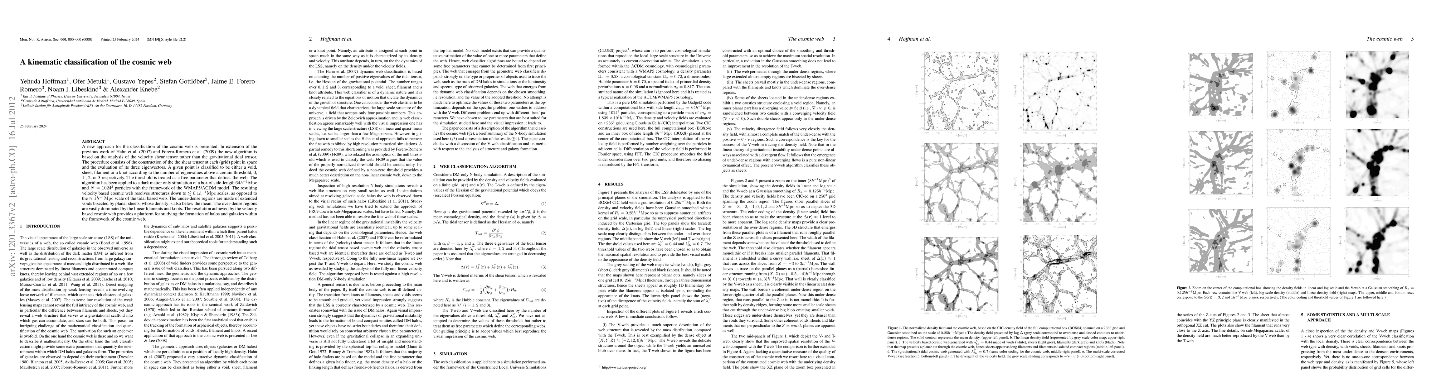 This paper introduces a new kinematic classification method for the cosmic web based on velocity shear tensor analysis, resolving structures down to <0.1$h^{-1}$Mpc scales, significantly finer than previous tidal tensor methods. The classification identifies voids, sheets, filaments, and knots based on the number of eigenvalues above a threshold.