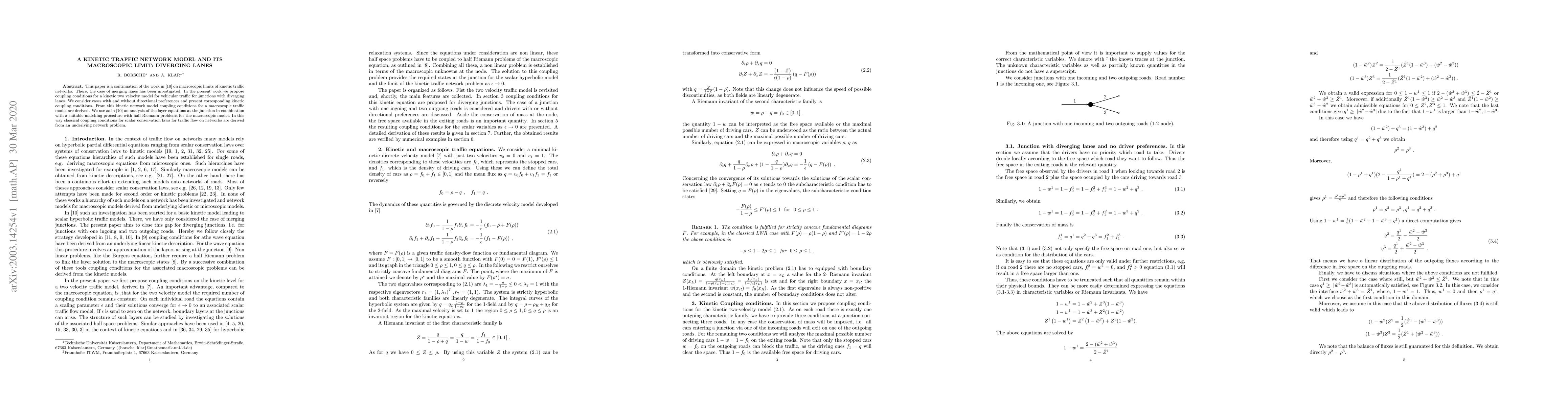 This paper proposes kinetic coupling conditions for a traffic model with diverging lanes at junctions, considering both directional preferences and non-preferences. It derives macroscopic traffic model conditions from the kinetic model using layer equations and matching procedures with half-Riemann problems.