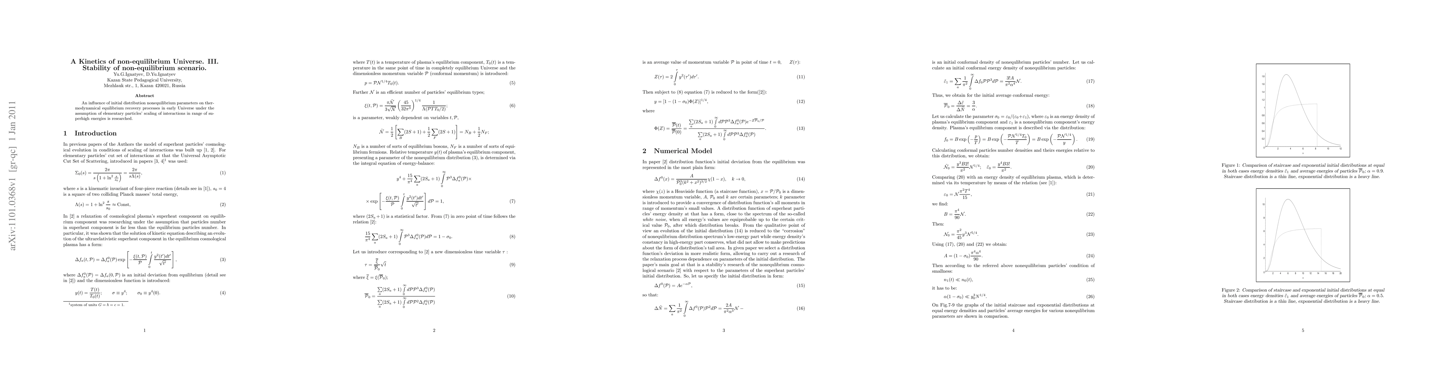 This paper investigates the impact of initial nonequilibrium distribution parameters on the recovery of thermodynamic equilibrium in the early Universe, assuming that particle interactions scale at superhigh energies. It examines the stability of a non-equilibrium scenario in the context of these interactions.