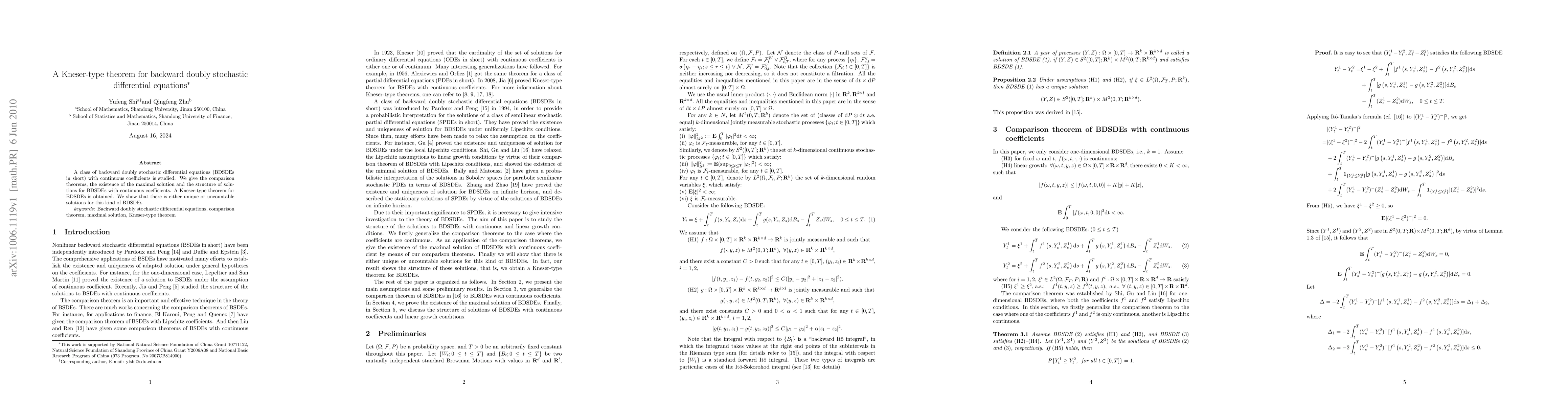 A class of backward doubly stochastic differential equations (BDSDEs in short) with continuous coefficients is studied. We give the comparison theorems, the existence of the maximal solution and the structure of solutions for BDSDEs with continuous coefficients. A Kneser-type theorem for BDSDEs is obtained. We show that there is either unique or uncountable solutions for this kind of BDSDEs.
