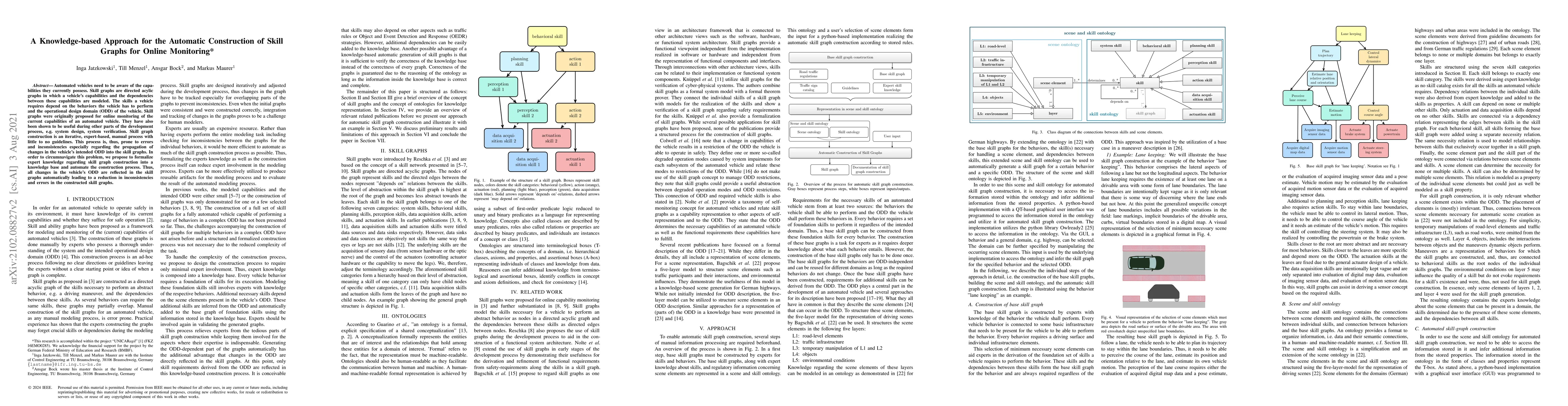 This paper proposes a knowledge-based approach to automate the construction of skill graphs for online monitoring of automated vehicles, aiming to reduce errors and inconsistencies by formalizing expert knowledge into a knowledge base. The automated process ensures that changes in the vehicle's operational design domain are accurately reflected in the skill graphs.