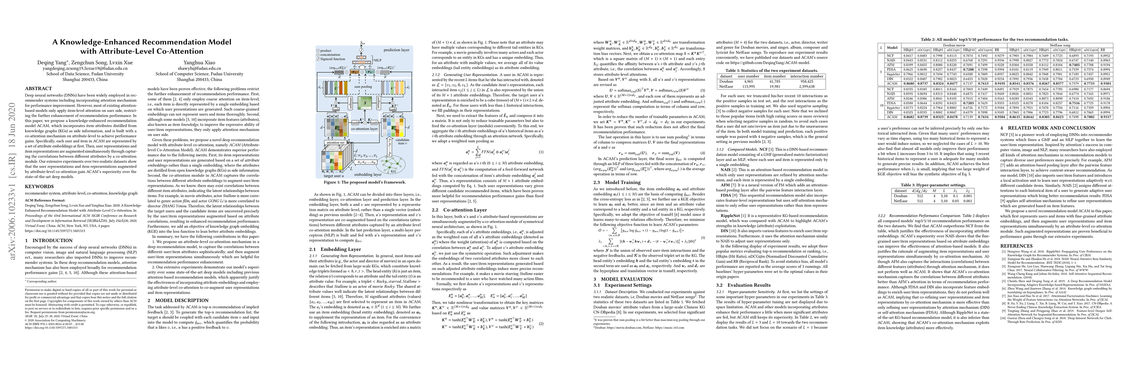 Deep neural networks (DNNs) have been widely employed in recommender systems including incorporating attention mechanism for performance improvement. However, most of existing attention-based models only apply item-level attention on user side, restricting the further enhancement of recommendation performance. In this paper, we propose a knowledge-enhanced recommendation model ACAM, which incorporates item attributes distilled from knowledge graphs (KGs) as side information, and is built with a co-attention mechanism on attribute-level to achieve performance gains. Specifically, each user and item in ACAM are represented by a set of attribute embeddings at first. Then, user representations and item representations are augmented simultaneously through capturing the correlations between different attributes by a co-attention module. Our extensive experiments over two realistic datasets show that the user representations and item representations augmented by attribute-level co-attention gain ACAM's superiority over the state-of-the-art deep models.
