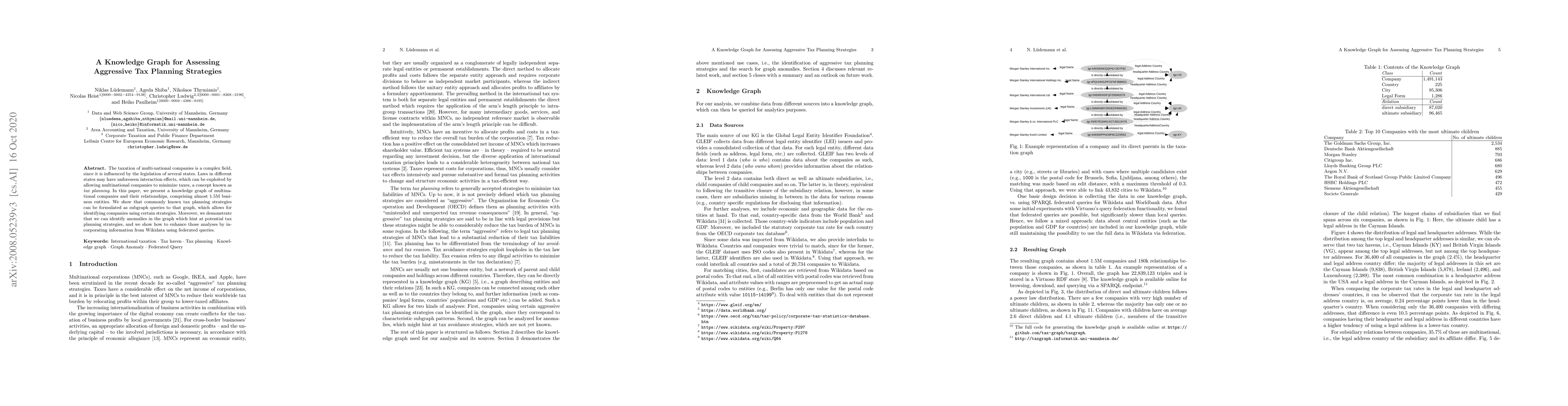 The taxation of multi-national companies is a complex field, since it is influenced by the legislation of several states. Laws in different states may have unforeseen interaction effects, which can be exploited by allowing multinational companies to minimize taxes, a concept known as tax planning. In this paper, we present a knowledge graph of multinational companies and their relationships, comprising almost 1.5M business entities. We show that commonly known tax planning strategies can be formulated as subgraph queries to that graph, which allows for identifying companies using certain strategies. Moreover, we demonstrate that we can identify anomalies in the graph which hint at potential tax planning strategies, and we show how to enhance those analyses by incorporating information from Wikidata using federated queries.