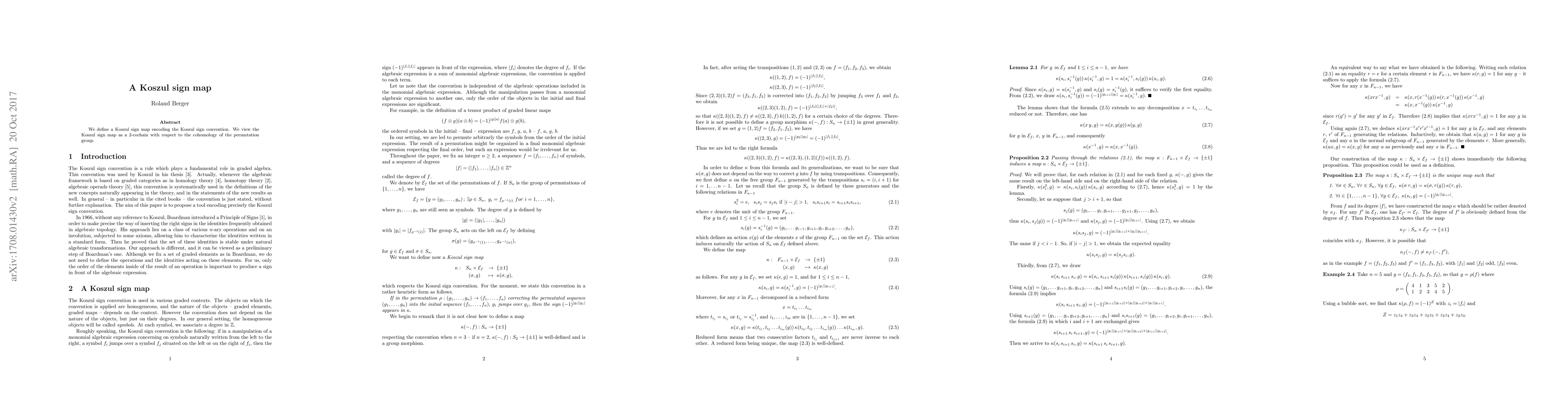 Summary: This paper introduces a Koszul sign map that formalizes the Koszul sign convention, providing a cohomological interpretation to enhance understanding of the underlying principles.