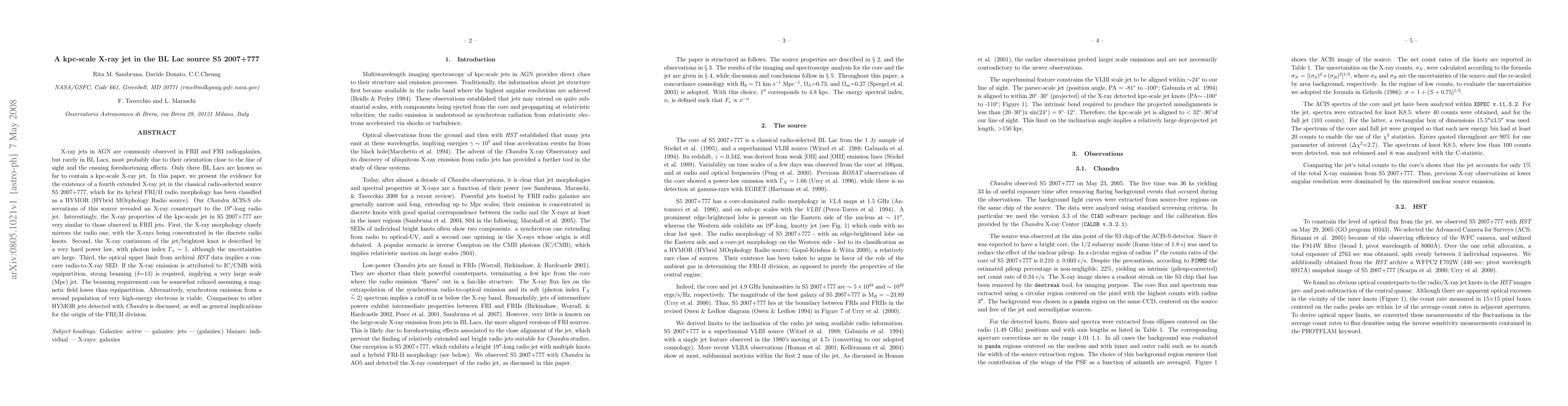 X-ray jets in AGN are commonly observed in FRII and FRI radio-galaxies, but rarely in BL Lacs, most probably due to their orientation close to the line of sight and the ensuing foreshortening effects. Only three BL Lacs are known so far to contain a kpc-scale X-ray jet. In this paper, we present the evidence for the existence of a fourth extended X-ray jet in the classical radio-selected source S5 2007+777, which for its hybrid FRI/II radio morphology has been classified as a HYMOR (HYbrid MOrphology Radio source). Our Chandra ACIS-S observations of this source revealed an X-ray counterpart to the 19"-long radio jet. Interestingly, the X-ray properties of the kpc-scale jet in S5 2007+777 are very similar to those observed in FRII jets. First, the X-ray morphology closely mirrors the radio one, with the X-rays being concentrated in the discrete radio knots. Second, the X-ray continuum of the jet/brightest knot is described by a very hard power law, with photon index Gamma_x~1, although the uncertainties are large. Third, the optical upper limit from archival HST data implies a concave radio-to-X-ray SED. If the X-ray emission is attributed to IC/CMB with equipartition, strong beaming (delta=13) is required, implying a very large scale (Mpc) jet. The beaming requirement can be somewhat relaxed assuming a magnetic field lower than equipartition. Alternatively, synchrotron emission from a second population of very high-energy electrons is viable. Comparison to other HYMOR jets detected with Chandra is discussed, as well as general implications for the origin of the FRI/II division.