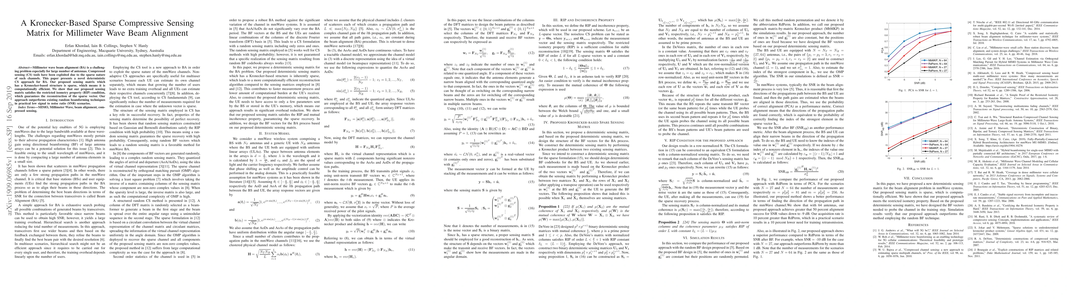 Millimeter wave beam alignment (BA) is a challenging problem especially for large number of antennas. Compressed sensing (CS) tools have been exploited due to the sparse nature of such channels. This paper presents a novel deterministic CS approach for BA. Our proposed sensing matrix which has a Kronecker-based structure is sparse, which means it is computationally efficient. We show that our proposed sensing matrix satisfies the restricted isometry property (RIP) condition, which guarantees the reconstruction of the sparse vector. Our approach outperforms existing random beamforming techniques in practical low signal to noise ratio (SNR) scenarios.