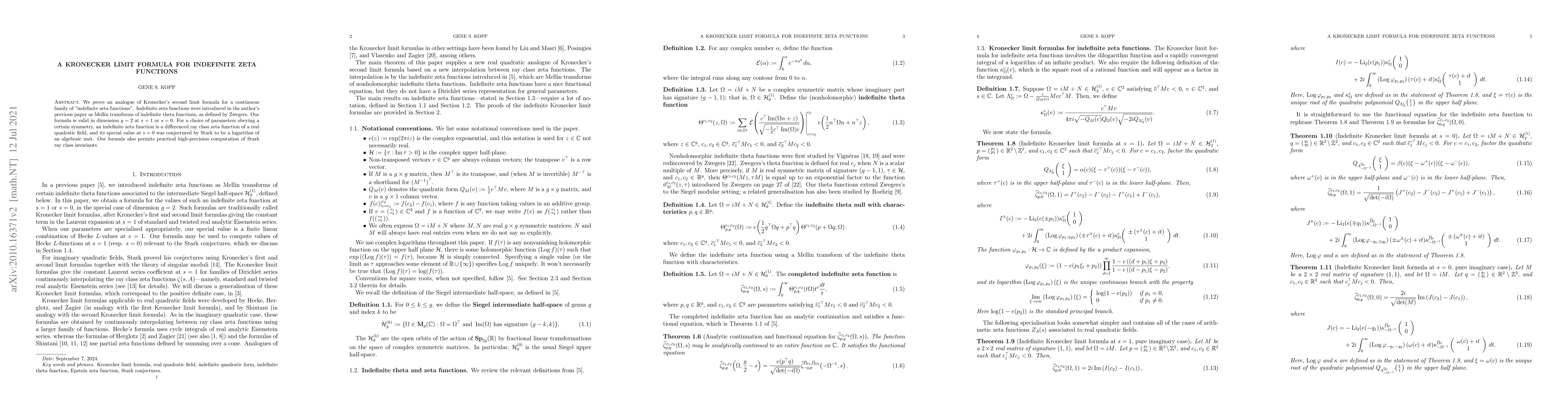 Researchers prove a formula for indefinite zeta functions, valid in two dimensions, which relates to Stark's conjecture about ray class invariants and allows for high-precision computation.