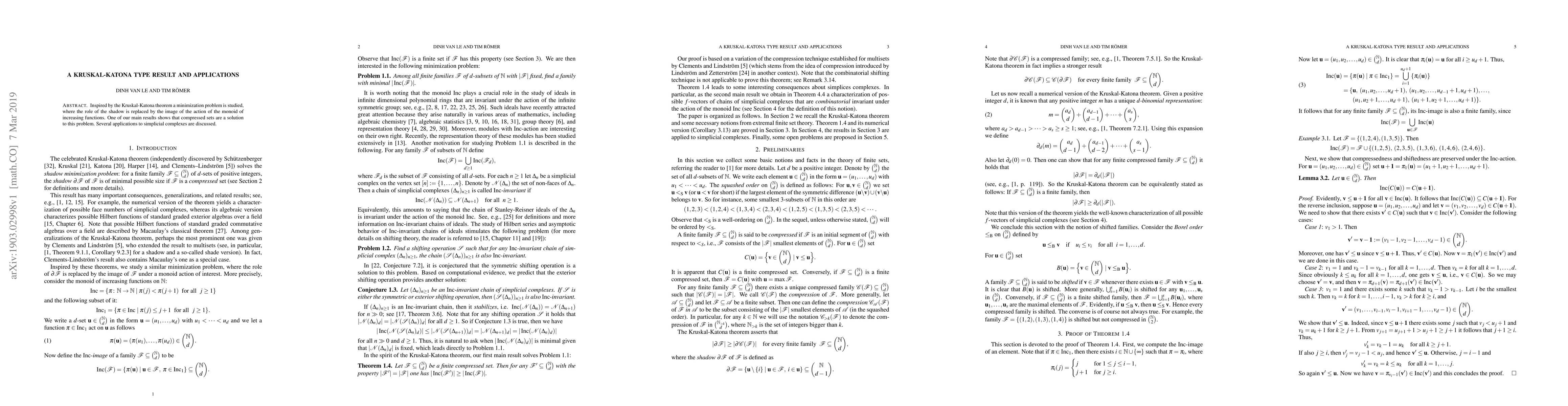 Summary: This paper extends the Kruskal-Katona theorem by studying a minimization problem involving the image of the action of the monoid of increasing functions, proving that compressed sets solve this problem. It also explores applications of this result to simplicial complexes.