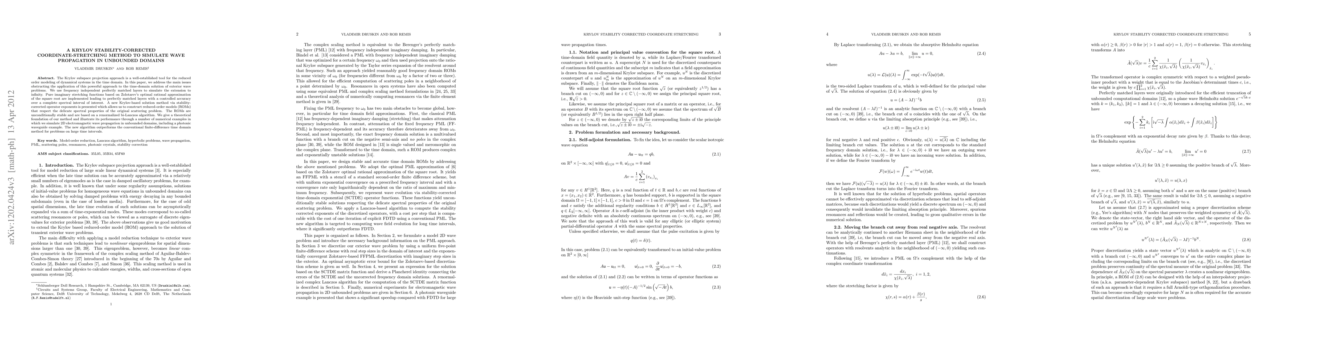 A new method is introduced to simulate wave propagation in unbounded domains using a Krylov stability-corrected coordinate-stretching approach, outperforming conventional finite-difference time domain methods for large time intervals.