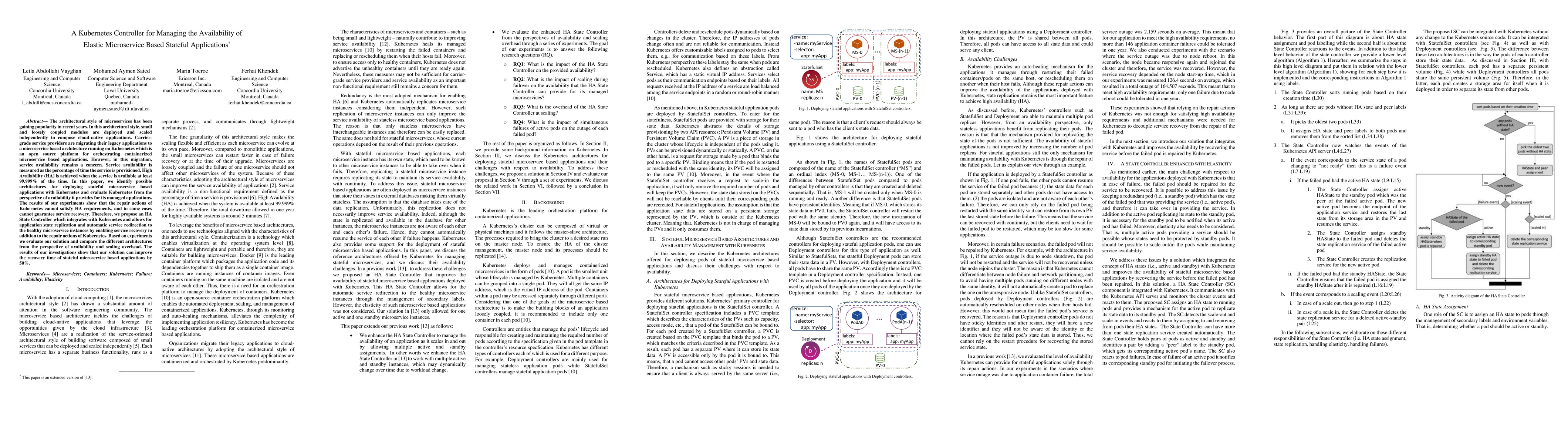 The paper presents an HA State Controller that integrates with Kubernetes to manage the availability of stateful microservice-based applications, enabling automatic service redirection to healthy instances and state replication for faster recovery.
