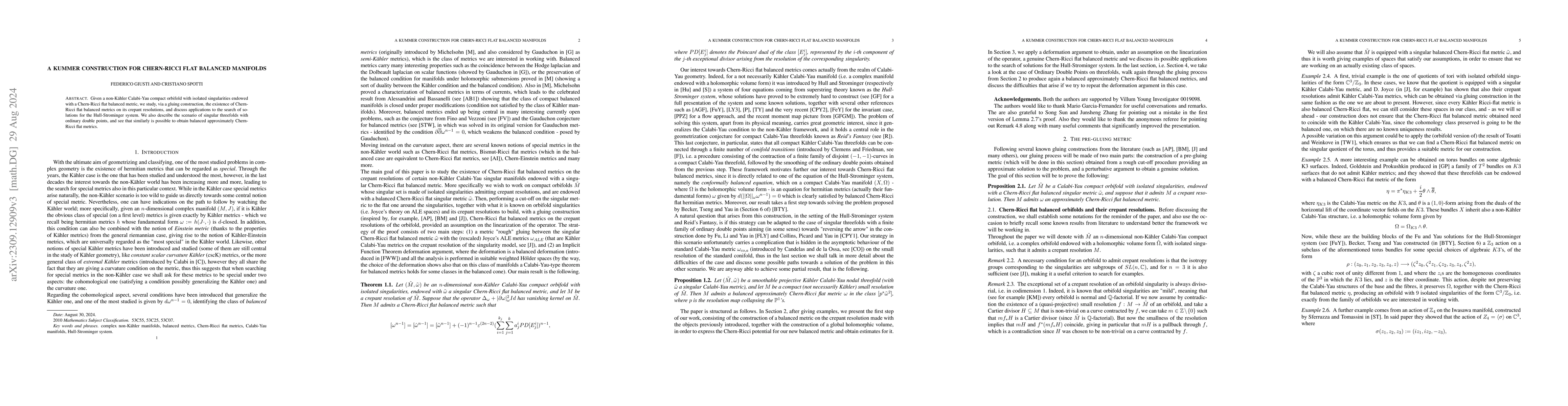 This paper demonstrates a Kummer construction to prove that crepant resolutions of non-Kähler Calabi-Yau orbifolds with isolated singularities can carry Chern-Ricci flat balanced metrics, extending this result to singular threefolds with ordinary double points. Applications to solving the Hull-Strominger system are also discussed.