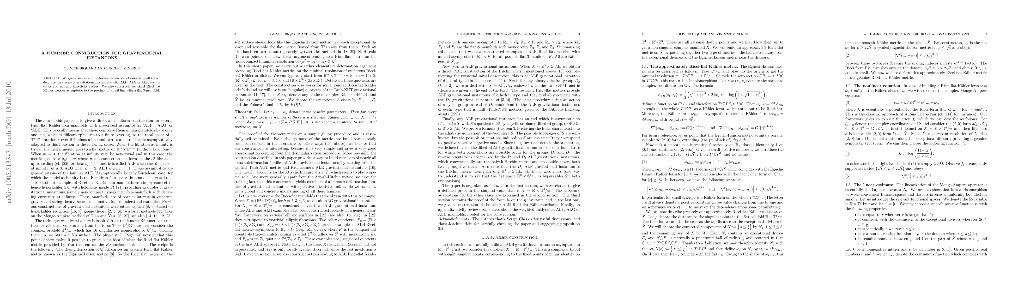 Summary: This paper presents a unified Kummer construction method for generating various gravitational instantons with ALF, ALG, or ALH asymptotics and nonzero injectivity radius, and introduces new ALH Ricci flat metrics with specific asymptotic properties.