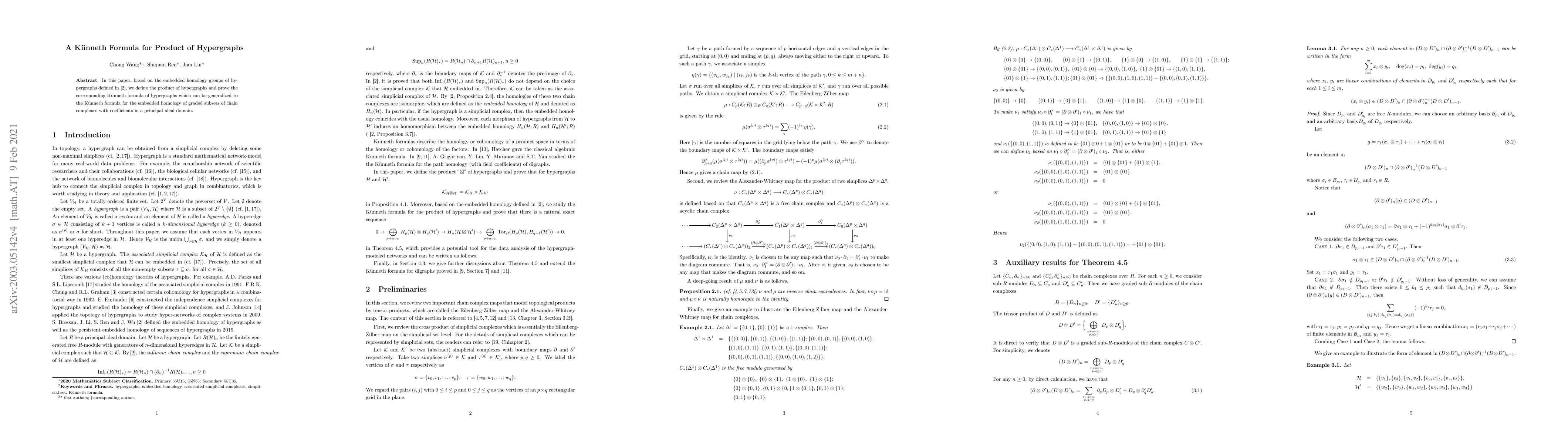 This paper introduces the product of hypergraphs and proves a Künneth formula for them, generalizing this result to embedded homology in graded subsets of chain complexes with coefficients in a principal ideal domain.