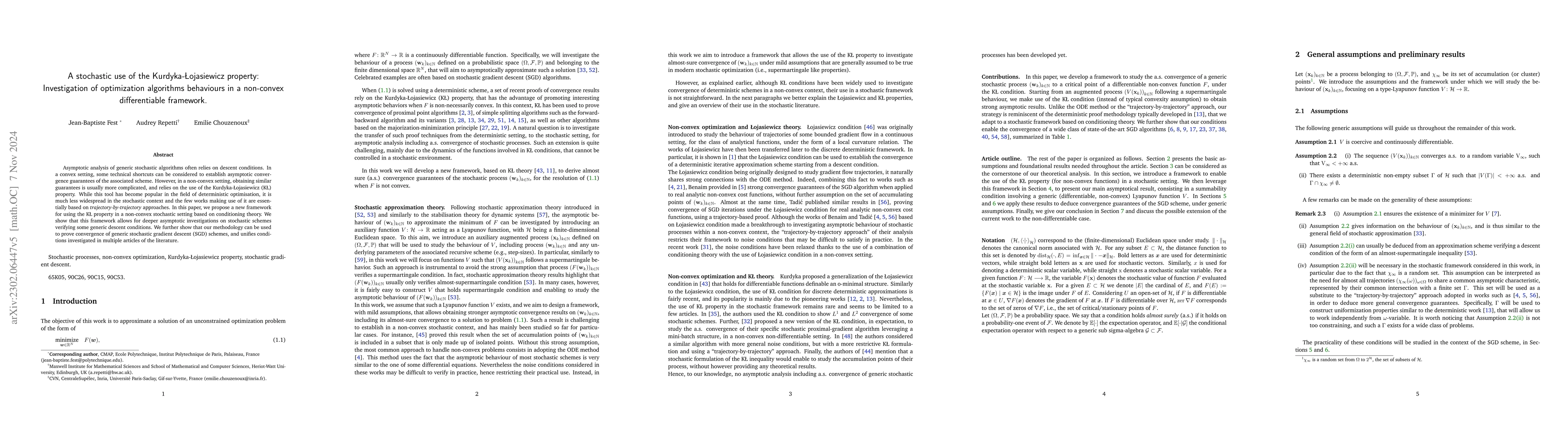 This paper develops a framework to ensure almost sure convergence of stochastic optimization algorithms in non-convex settings by leveraging a novel Kurdyka-Lojasiewicz property. It provides convergence guarantees for stochastic processes under mild assumptions on the objective function and demonstrates the effectiveness with examples of stochastic algorithms.