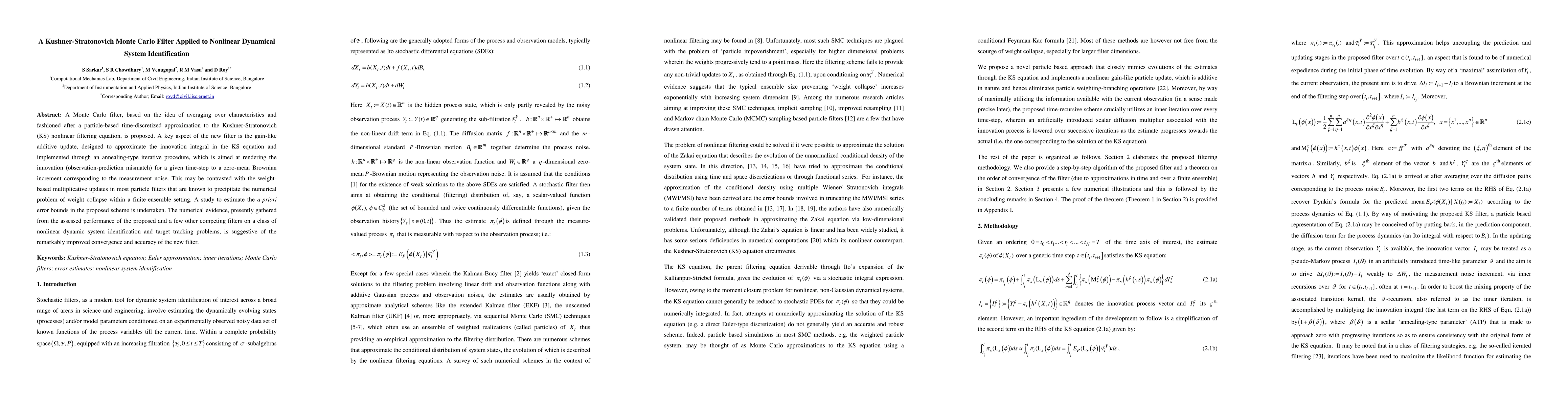 This paper proposes a new Monte Carlo filter based on the Kushner-Stratonovich equation, featuring an additive update to mitigate weight collapse, and demonstrates its improved performance in nonlinear dynamical system identification and target tracking compared to traditional particle filters. The study also assesses the a-priori error bounds of the proposed method.