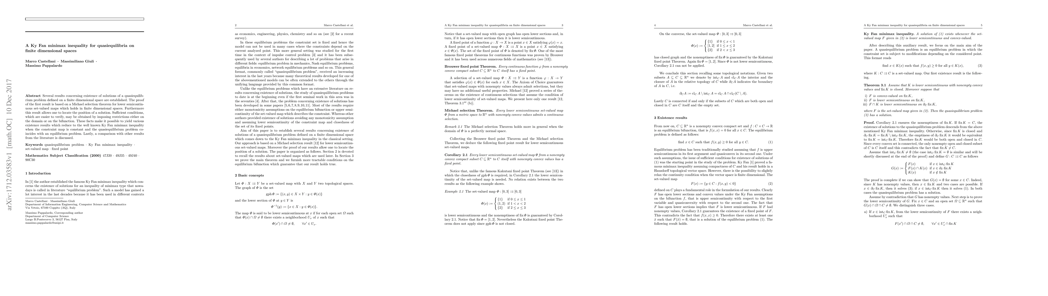 This paper establishes existence results for quasiequilibrium problems in finite-dimensional spaces using a Michael selection theorem and links these to the Ky Fan minimax inequality under certain conditions. The study also compares these findings with existing literature.