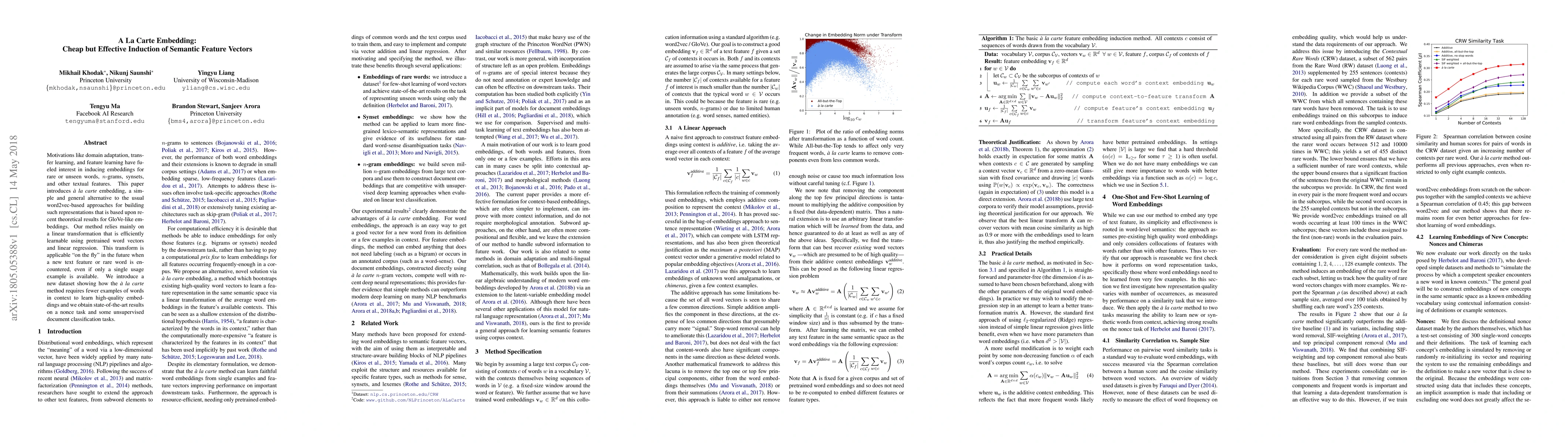 This paper proposes a la carte embedding as a cost-effective method for inducing semantic feature vectors for rare or unseen words, relying on a linear transformation based on pretrained word vectors and linear regression. The method requires fewer examples to learn high-quality embeddings and achieves state-of-the-art results on nonce tasks and unsupervised document classification.