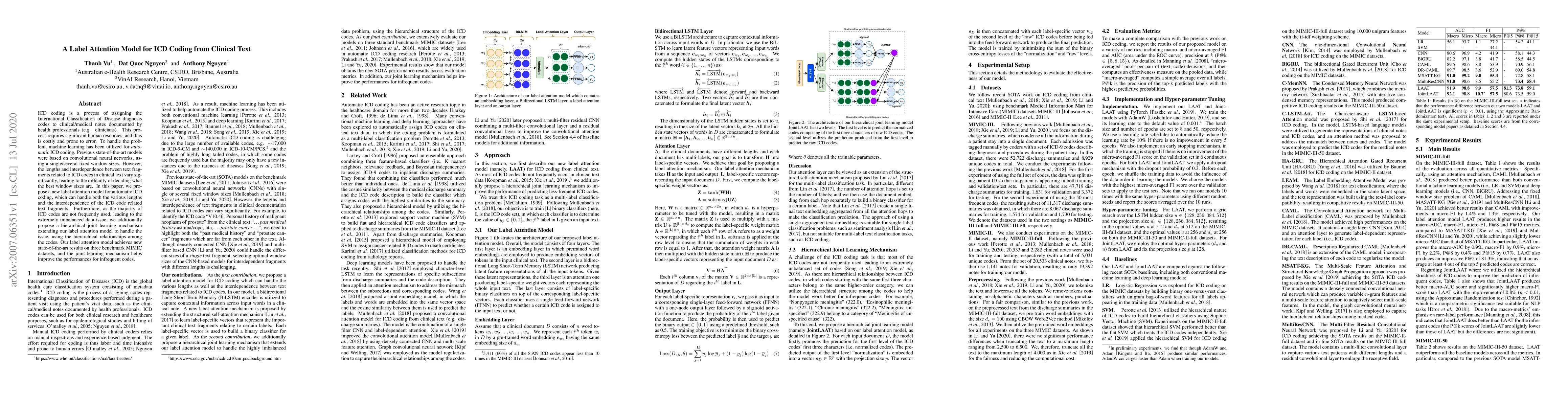 ICD coding is a process of assigning the International Classification of Disease diagnosis codes to clinical/medical notes documented by health professionals (e.g. clinicians). This process requires significant human resources, and thus is costly and prone to error. To handle the problem, machine learning has been utilized for automatic ICD coding. Previous state-of-the-art models were based on convolutional neural networks, using a single/several fixed window sizes. However, the lengths and interdependence between text fragments related to ICD codes in clinical text vary significantly, leading to the difficulty of deciding what the best window sizes are. In this paper, we propose a new label attention model for automatic ICD coding, which can handle both the various lengths and the interdependence of the ICD code related text fragments. Furthermore, as the majority of ICD codes are not frequently used, leading to the extremely imbalanced data issue, we additionally propose a hierarchical joint learning mechanism extending our label attention model to handle the issue, using the hierarchical relationships among the codes. Our label attention model achieves new state-of-the-art results on three benchmark MIMIC datasets, and the joint learning mechanism helps improve the performances for infrequent codes.