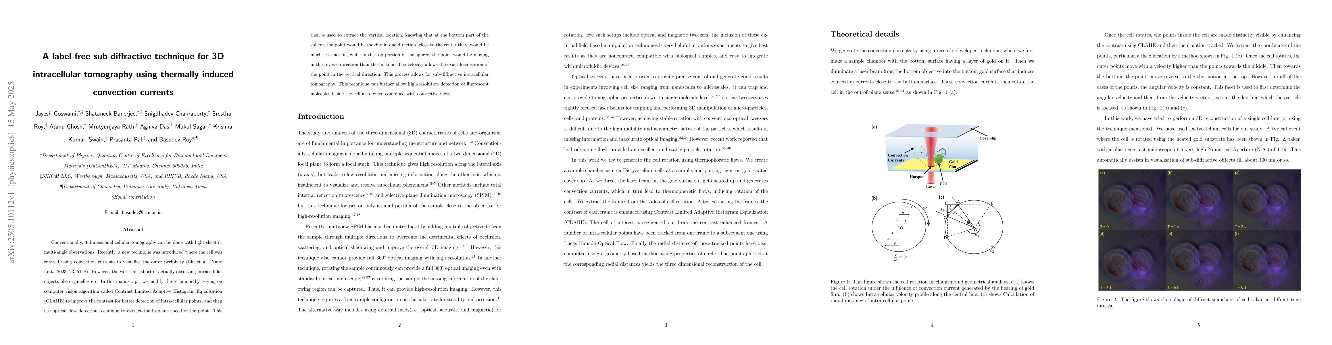 Introduction of a label-free sub-diffractive 3D intracellular tomography technique using thermally induced convection currents and advanced computer vision algorithms.