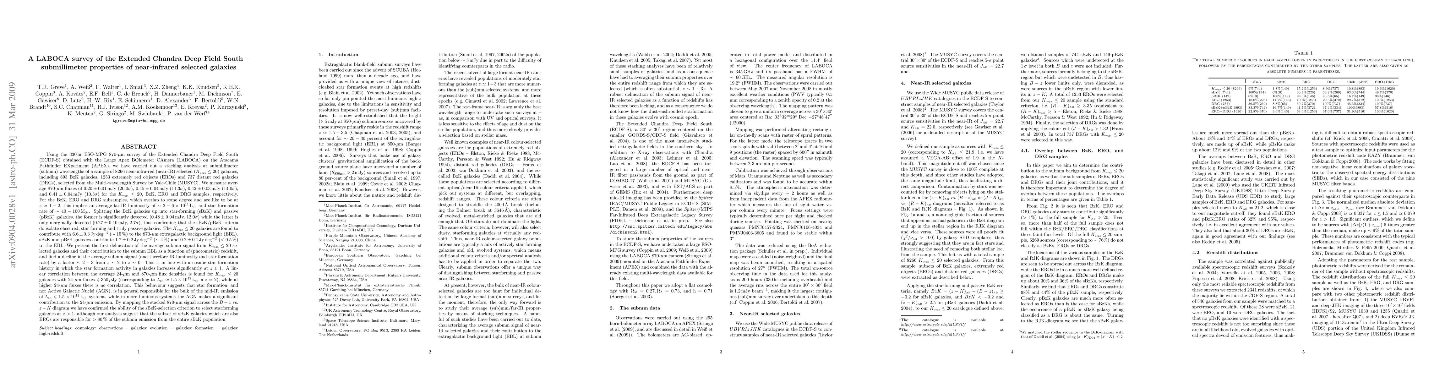 This paper reports a submillimeter survey of near-IR selected galaxies using LABOCA on APEX, finding average 870-micron fluxes and far-IR luminosities for different galaxy types, confirming the distinction between star-forming and passive BzK galaxies. The K_vega <= 20 galaxies contribute ~15% to the 870-micron extragalactic background light.