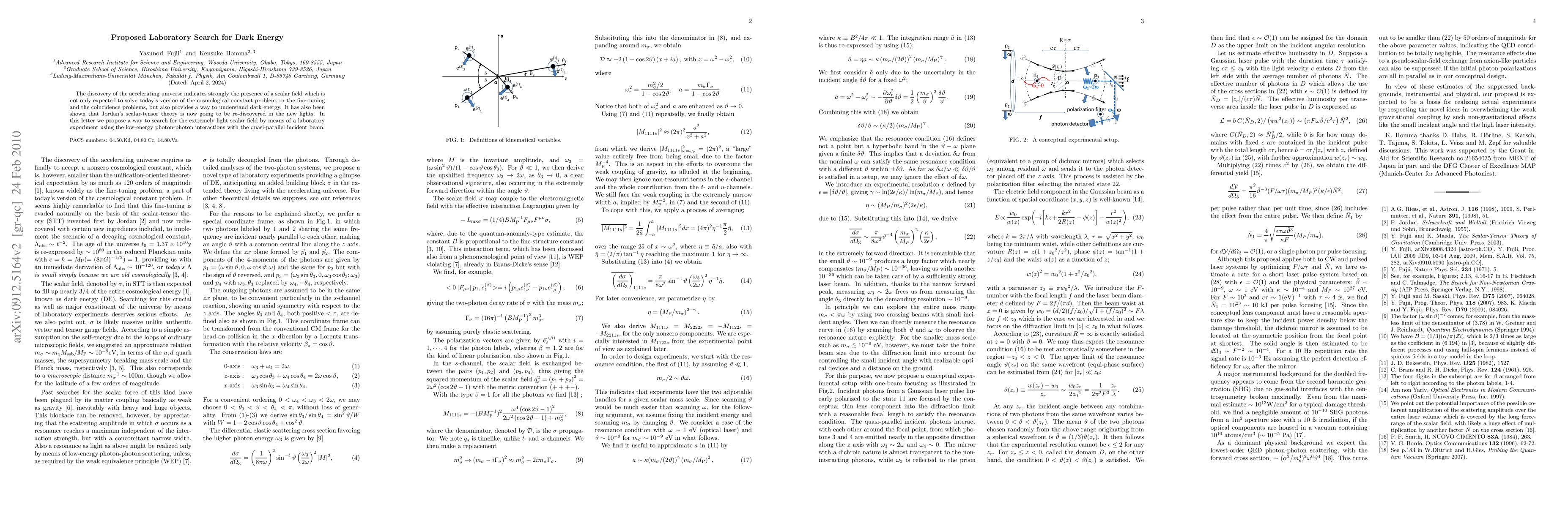 The discovery of the accelerating universe indicates strongly the presence of a scalar field which is not only expected to solve today's version of the cosmological constant problem, or the fine-tuning and the coincidence problems, but also provides a way to understand dark energy. It has also been shown that Jordan's scalar-tensor theory is now going to be re-discovered in the new lights. In this letter we suggest a way to search for the extremely light scalar field by means of a laboratory experiment on the low-energy photon-photon interactions with the quasi-parallel incident beams.