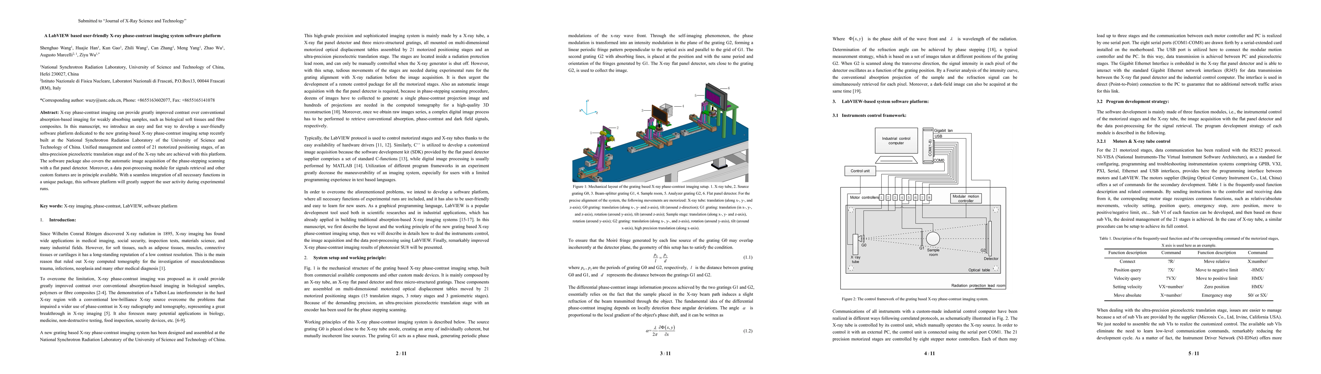 This paper presents a LabVIEW-based software platform for managing and controlling a new grating-based X-ray phase-contrast imaging system, facilitating the acquisition and post-processing of high-contrast images for weakly absorbing samples. It integrates control of multiple motorized stages and automatic image acquisition, enhancing experimental efficiency.