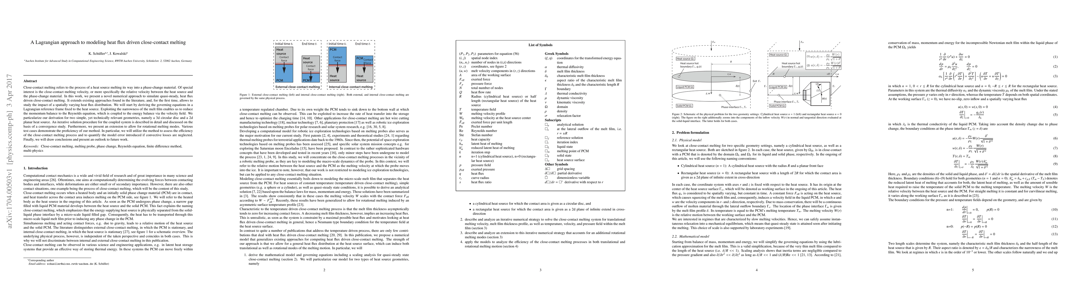 Close-contact melting refers to the process of a heat source melting its way into a phase-change material. Of special interest is the close-contact melting velocity, or more specifically the relative velocity between the heat source and the phase-change material. In this work, we present a novel numerical approach to simulate quasi-steady, heat flux driven close-contact melting. It extends existing approaches found in the literature, and, for the first time, allows to study the impact of a spatially varying heat flux distribution. We will start by deriving the governing equations in a Lagrangian reference frame fixed to the heat source. Exploiting the narrowness of the melt film enables us to reduce the momentum balance to the Reynolds equation, which is coupled to the energy balance via the velocity field. We particularize our derivation for two simple, yet technically relevant geometries, namely a 3d circular disc and a 2d planar heat source. An iterative solution procedure for the coupled system is described in detail and discussed on the basis of a convergence study. Furthermore, we present an extension to allow for rotational melting modes. Various test cases demonstrate the proficiency of our method. In particular, we will utilize the method to assess the efficiency of the close-contact melting process and to quantify the model error introduced if convective losses are neglected. Finally, we will draw conclusions and present an outlook to future work.