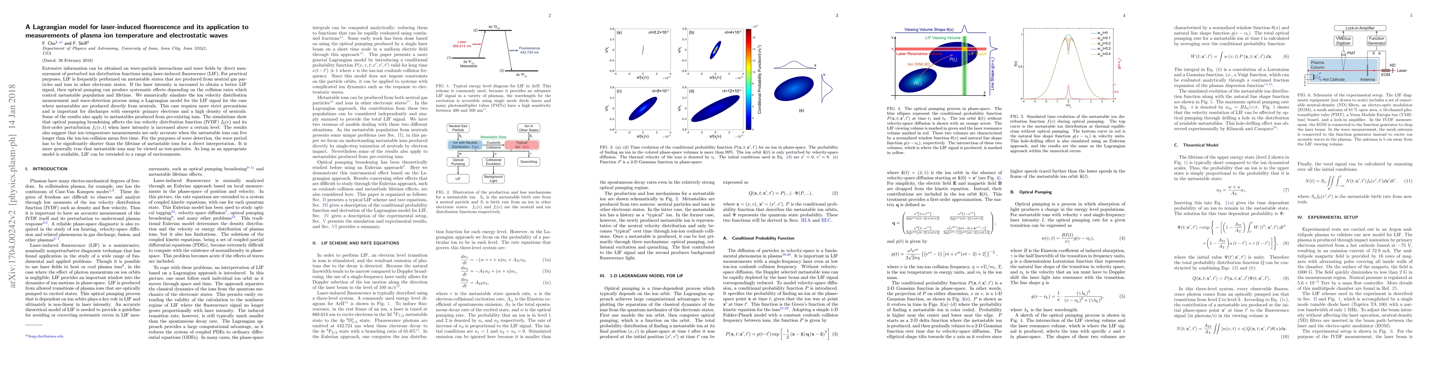 Extensive information can be obtained on wave-particle interactions and wave fields by direct measurement of perturbed ion distribution functions using laser-induced fluorescence (LIF). For practical purposes, LIF is frequently performed on metastable states that are produced from neutral gas particles and ions in other electronic states. If the laser intensity is increased to obtain a better LIF signal, then optical pumping can produce systematic effects depending on the collision rates which control metastable population and lifetime. We numerically simulate the ion velocity distribution measurement and wave-detection process using a Lagrangian model for the LIF signal for the case where metastables are produced directly from neutrals. This case requires more strict precautions and is important for discharges with energetic primary electrons and a high density of neutrals. Some of the results also apply to metastables produced from pre-existing ions. The simulations show that optical pumping broadening affects the ion velocity distribution function (IVDF) $f_0(v)$ and its first-order perturbation $f_1(v,t)$ when laser intensity is increased above a certain level. The results also suggest that ion temperature measurements are only accurate when the metastable ions can live longer than the ion-ion collision mean free time. For the purposes of wave detection, the wave period has to be significantly shorter than the lifetime of metastable ions for a direct interpretation. It is more generally true that metastable ions may be viewed as test-particles. As long as an appropriate model is available, LIF can be extended to a range of environments.