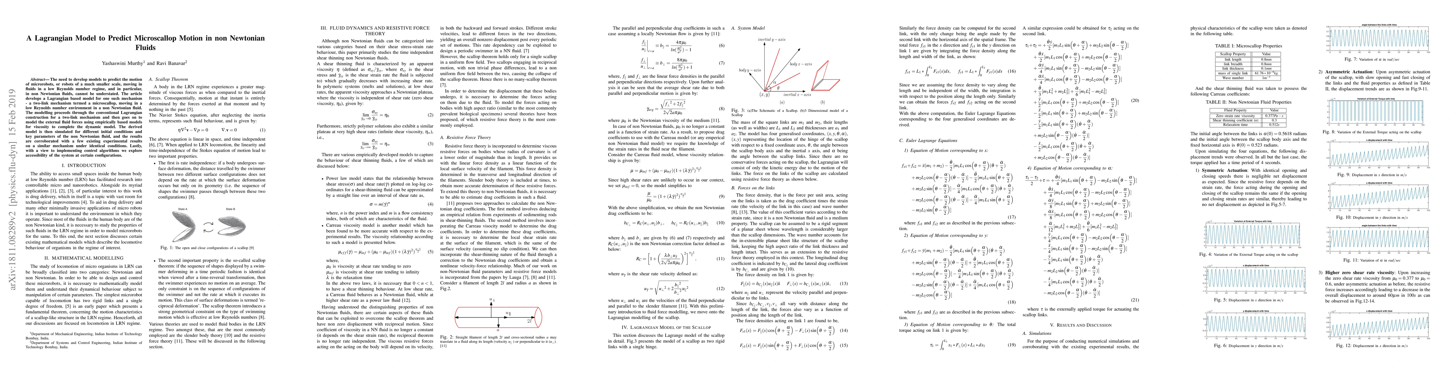 This paper develops a Lagrangian model to predict the motion of a two-link microscallop mechanism in low Reynolds number non-Newtonian fluids, incorporating empirically based viscosity models. Simulation results are validated against existing experimental data and controllability of the system is explored.