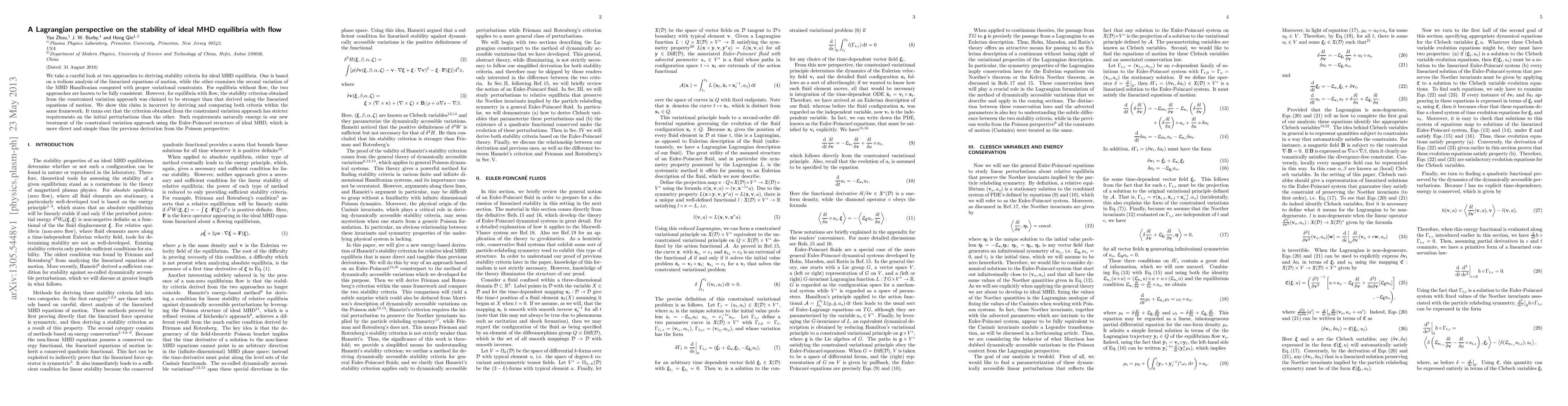 The paper provides a comprehensive comparison and correction of stability criteria for ideal MHD equilibria with flow, utilizing a Lagrangian perspective and Euler-Poincaré structure to derive and compare criteria within the same framework.