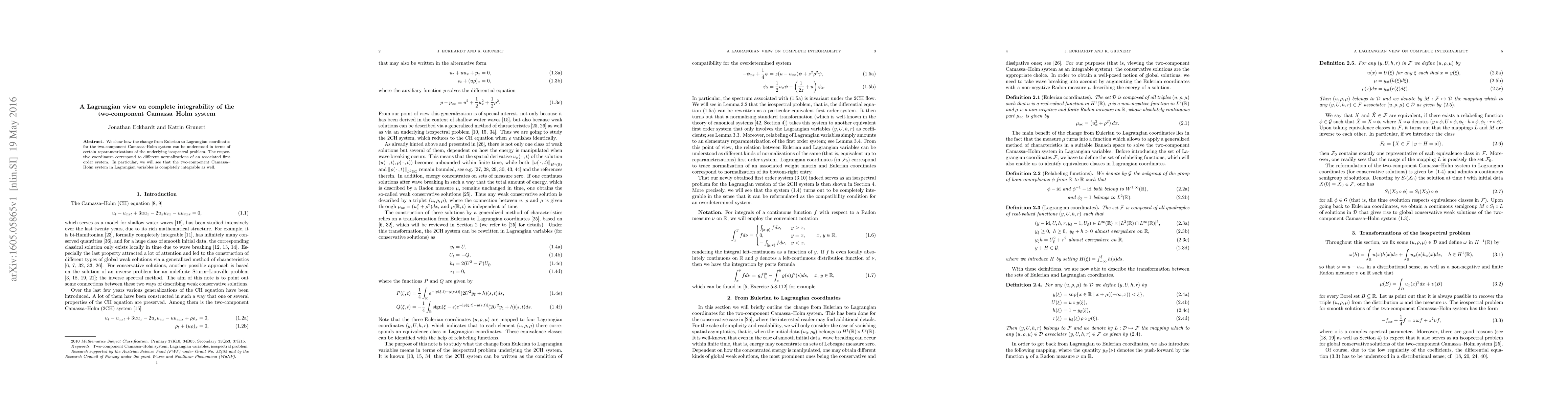 This paper explores the transition from Eulerian to Lagrangian coordinates in the two-component Camassa-Holm system, revealing that this shift corresponds to specific reparametrizations of an isospectral problem. The authors demonstrate that the system remains completely integrable when viewed in Lagrangian coordinates.
