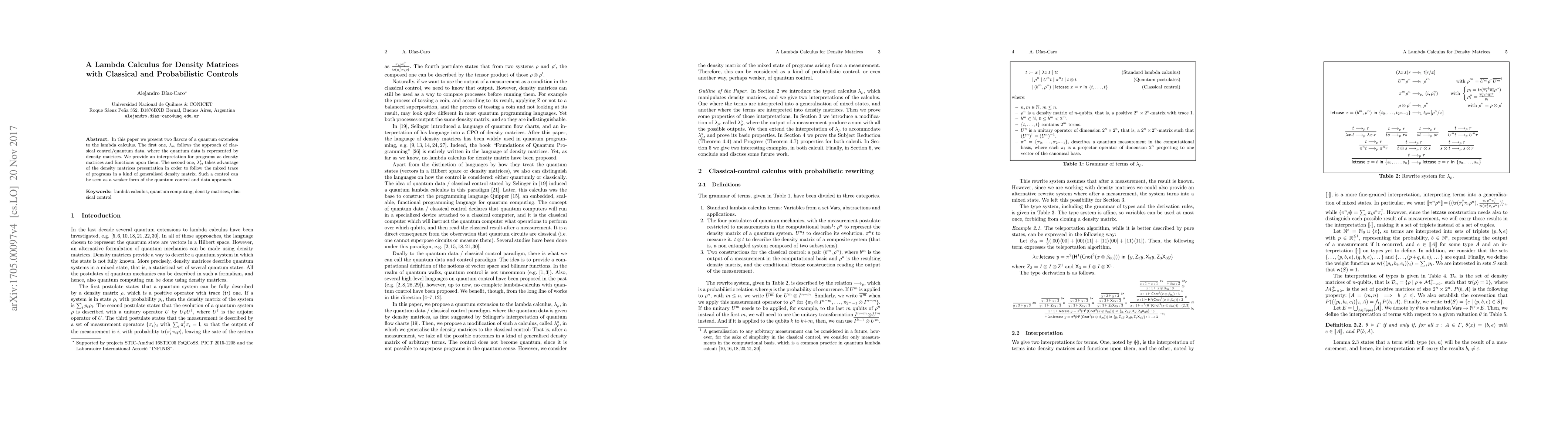 In this paper we present two flavors of a quantum extension to the lambda calculus. The first one, $\lambda_\rho$, follows the approach of classical control/quantum data, where the quantum data is represented by density matrices. We provide an interpretation for programs as density matrices and functions upon them. The second one, $\lambda_\rho^\circ$, take advantage of the density matrices presentation in order to follow the mixed trace of programs in a kind of generalised density matrix. Such a control can be seen as a weaker form of the quantum control and data approach.