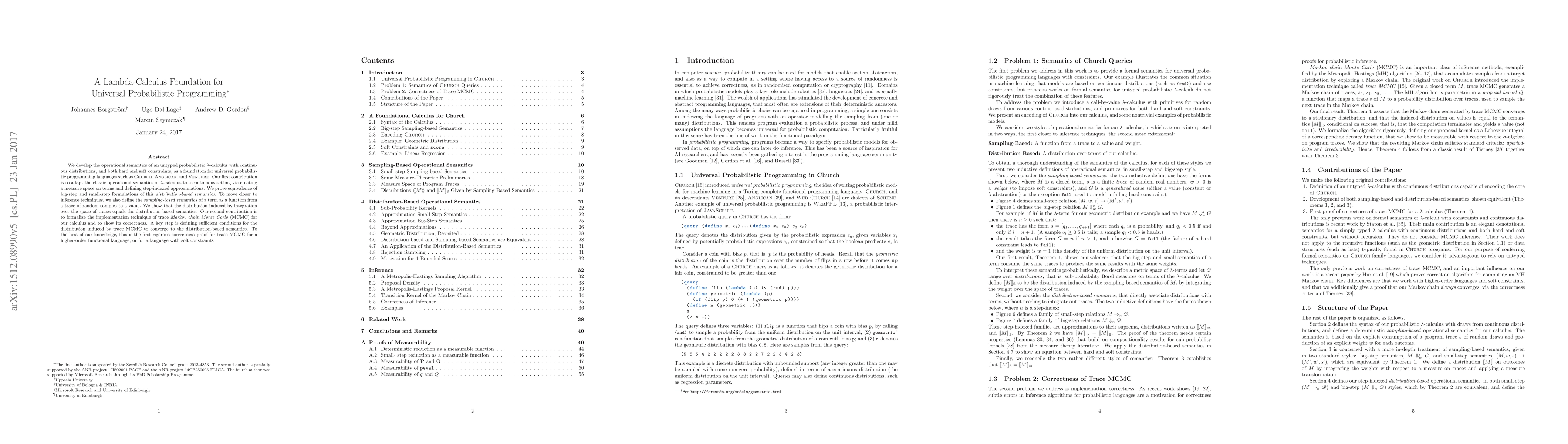This paper presents an untyped probabilistic lambda-calculus with continuous distributions, adapting classic lambda-calculus operational semantics to a continuous setting and proving equivalence between big-step and small-step formulations. It also formalizes trace MCMC implementation and proves its correctness for higher-order functional languages.