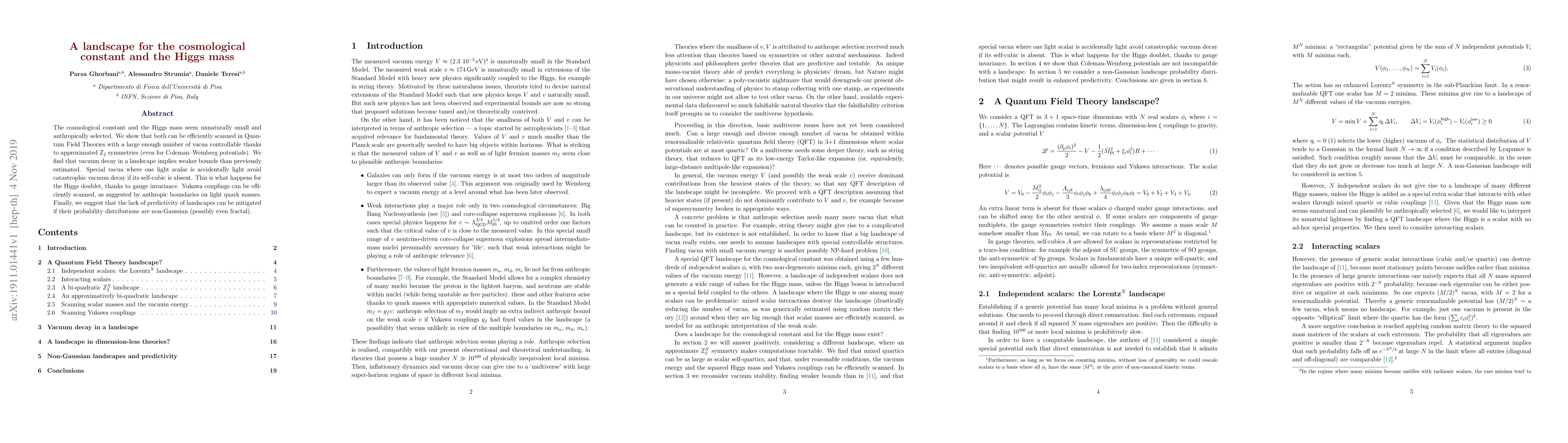 This paper explores how the cosmological constant and Higgs mass can be naturally small in quantum field theories with many vacua and approximate $\mathbb{Z}_2$ symmetries. It suggests that vacuum decay constraints are weaker than previously thought, and that the Higgs mass can remain light due to gauge invariance, while non-Gaussian probability distributions in landscapes may improve predictability.