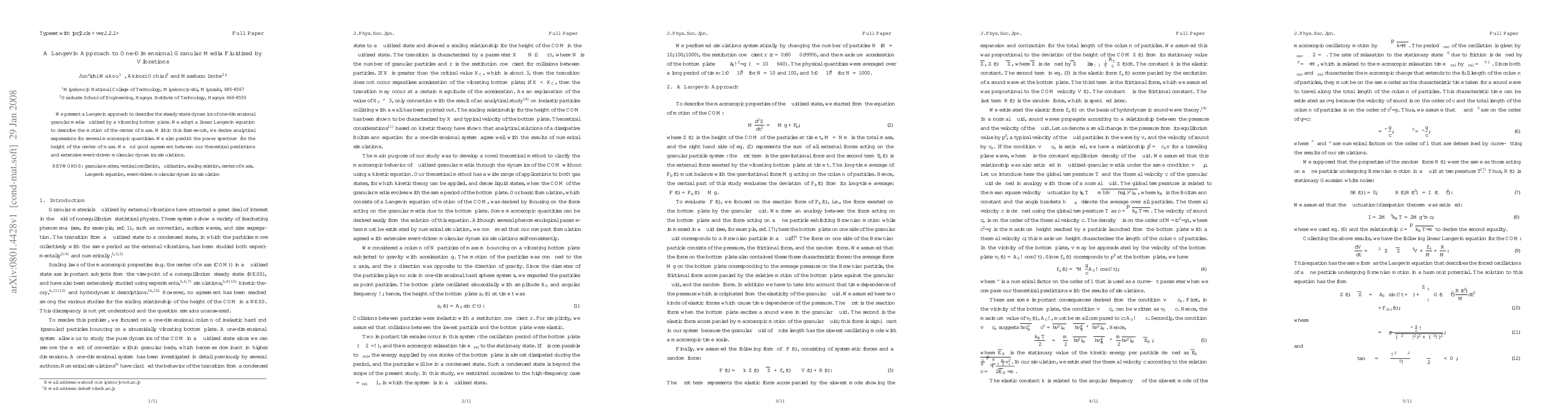 This research proposes a Langevin approach to model the steady-state dynamics of one-dimensional granular media fluidized by vibrations, deriving analytical expressions and predicting the power spectrum for the center of mass height, with results corroborated by molecular dynamics simulations.