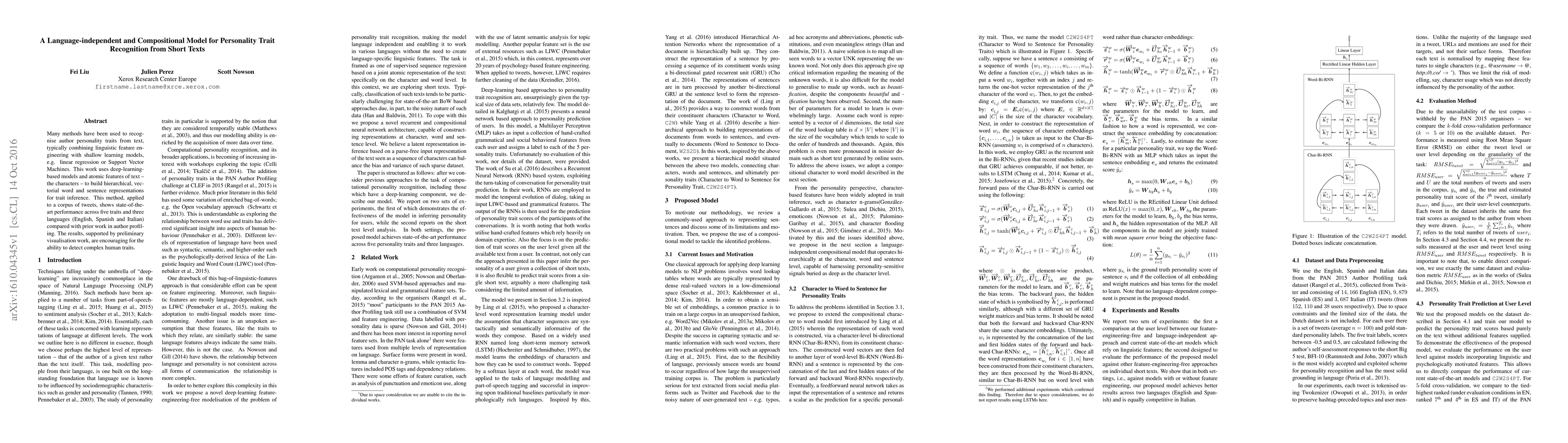 This research paper presents a language-independent and compositional model for recognizing personality traits from short texts using deep-learning-based models. It achieves state-of-the-art performance across five traits and three languages, showing promising results in detecting complex human traits.