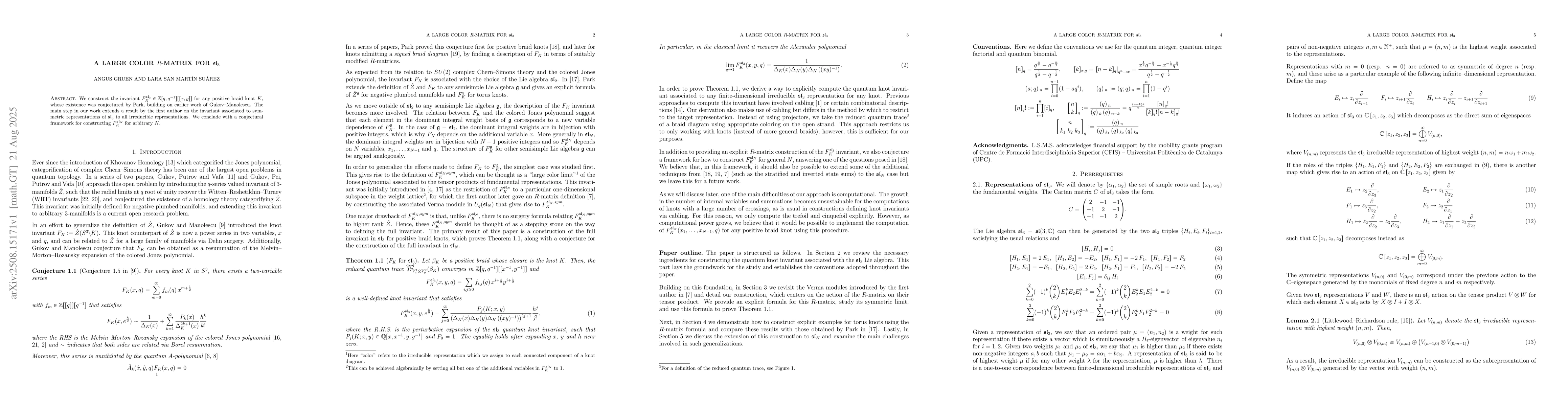 We construct the invariant $F_K^{\mathfrak{sl}_3}\in\mathbb{Z}[q,q^{-1}][[x,y]]$ for any positive braid knot $K$, whose existence was conjectured by Park, building on earlier work of Gukov--Manolescu. The main step in our work extends a result by the first author on the invariant associated to symmetric representations of $\mathfrak{sl}_3$ to all irreducible representations. We conclude with a conjectural framework for constructing $F_K^{\mathfrak{sl}_N}$ for arbitrary $N$.