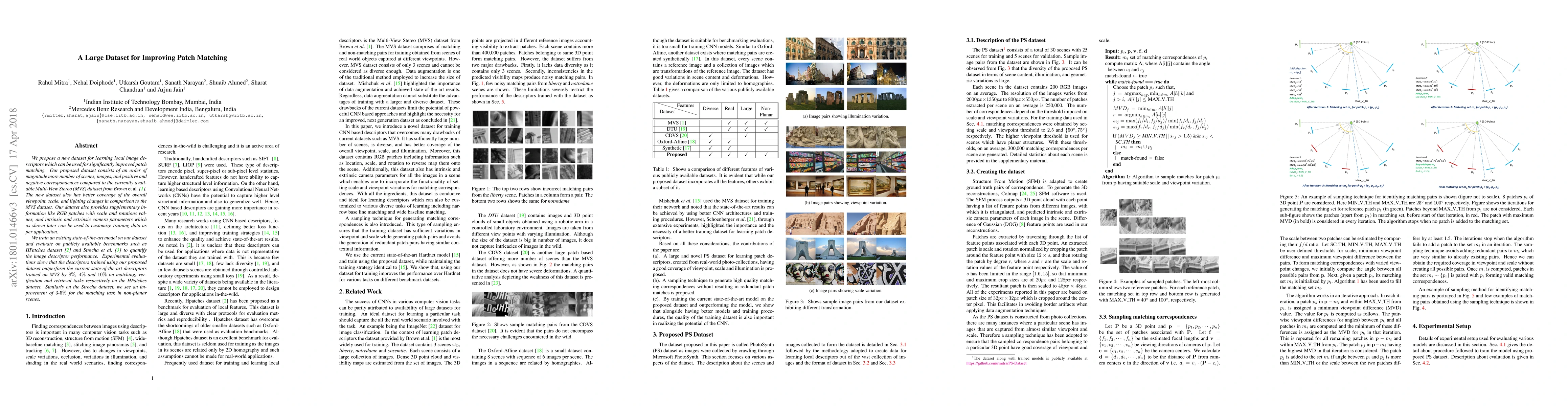 This paper introduces a significantly larger dataset for training local image descriptors, which improves patch matching performance by 8%, 4%, and 10% on various tasks compared to the current state-of-the-art. The new dataset offers extensive coverage of viewpoint, scale, and lighting changes, along with detailed camera parameters.