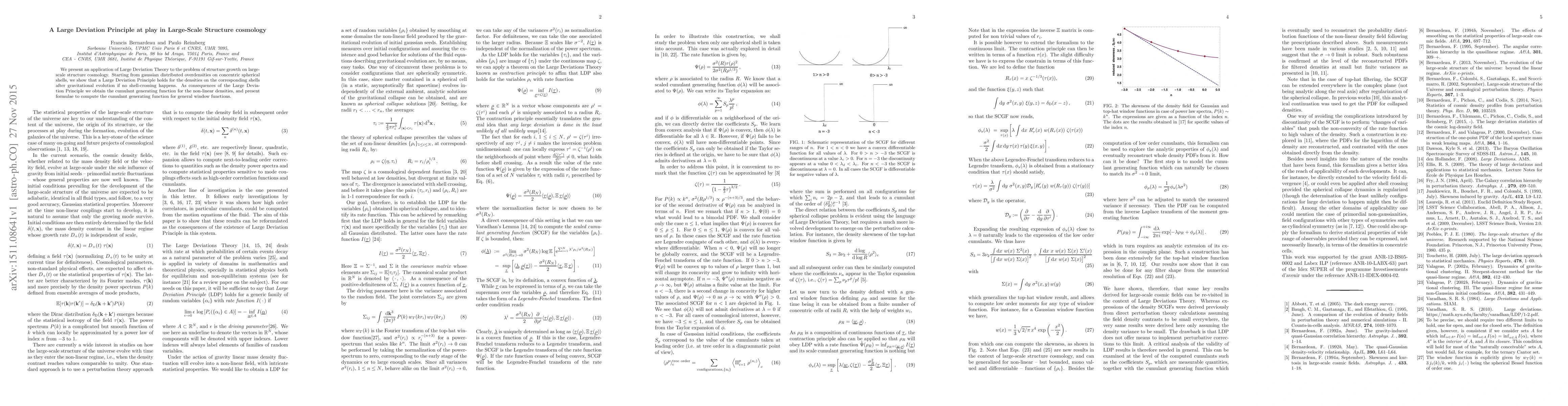 This paper applies Large Deviation Theory to study structure growth in cosmology, demonstrating a Large Deviation Principle for evolved overdensities on spherical shells, and deriving the cumulant generating function for non-linear densities.