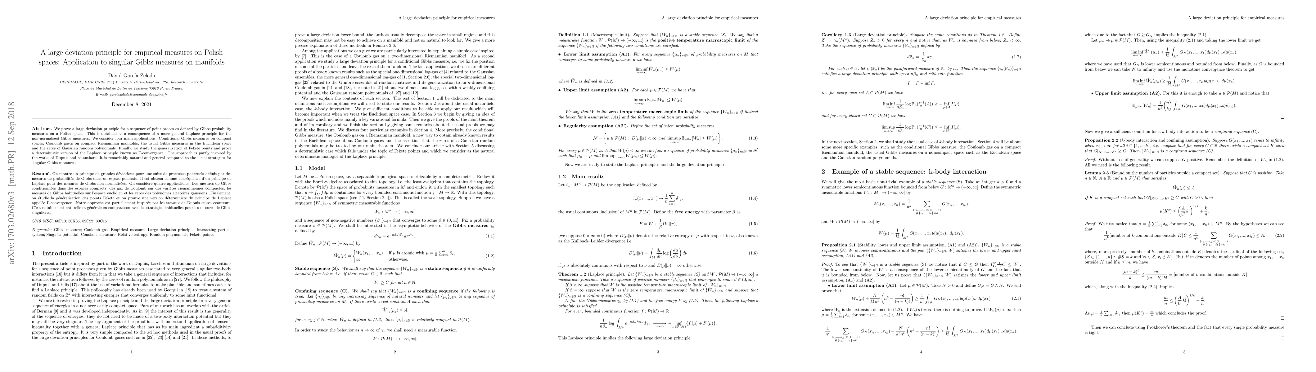 This paper establishes a large deviation principle for point processes defined by Gibbs measures on Polish spaces, extending to applications like conditional Gibbs measures, Coulomb gases on manifolds, and classical Gibbs measures in Euclidean space. The study also introduces a deterministic version of the Laplace principle via $\Gamma$-convergence.