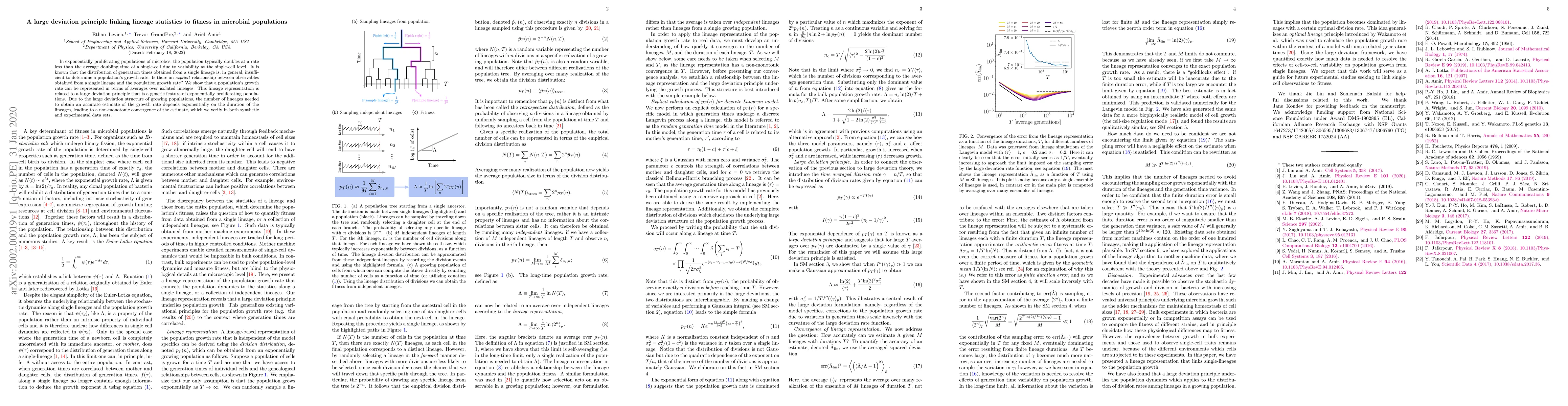 A research paper shows that a population's growth rate can be represented in terms of averages over isolated lineages, with the number of lineages needed to estimate growth rate depending exponentially on duration, leading to non-monotonic convergence.