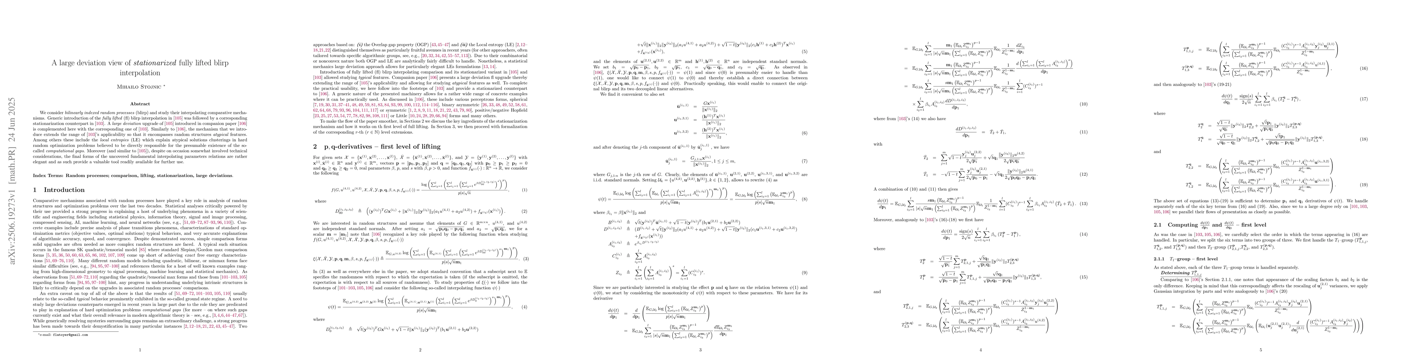 We consider \emph{bilinearly indexed random processes} (blirp) and study their interpolating comparative mechanisms. Generic introduction of the \emph{fully lifted} (fl) blirp interpolation in [105] was followed by a corresponding stationarization counterpart in [103]. A \emph{large deviation} upgrade of [105] introduced in companion paper [106] is complemented here with the corresponding one of [103]. Similarly to [106], the mechanism that we introduce extends the range of [103]'s applicability so that it encompasses random structures \emph{atypical} features. Among others these include the \emph{local entropies} (LE) which explain atypical solutions clusterings in hard random optimization problems believed to be directly responsible for the presumable existence of the so-called \emph{computational gaps}. Moreover (and similar to [105]), despite on occasion somewhat involved technical considerations, the final forms of the uncovered fundamental interpolating parameters relations are rather elegant and as such provide a valuable tool readily available for further use.