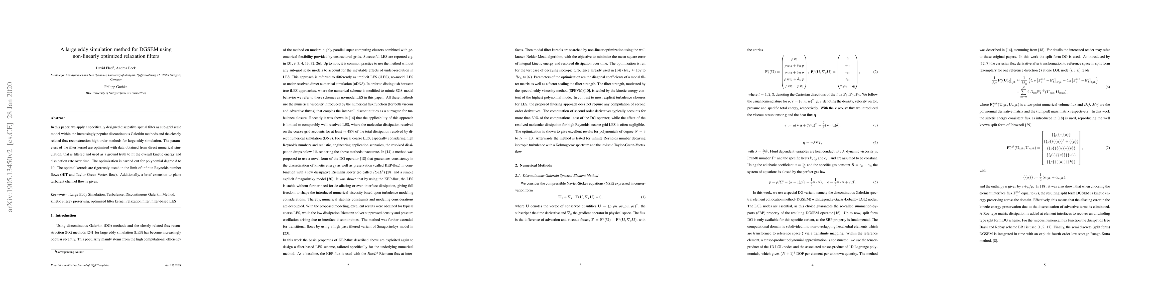 In this paper, we apply a specifically designed dissipative spatial filter as sub-grid scale model within the increasingly popular discontinuous Galerkin methods and the closely related flux reconstruction high order methods for large eddy simulation. The parameters of the filter kernel are optimized with data obtained from direct numerical simulation, that is filtered and used as a ground truth to fit the overall kinetic energy and dissipation rate over time. The optimization is carried out for polynomial degree 3 to 10. The optimal kernels are rigorously tested in the limit of infinite Reynolds number flows (HIT and Taylor Green Vortex flow). Additionally, a brief extension to plane turbulent channel flow is given. Besides the overall good performance, the method is especially attractive in combination with wall modeled LES, because it avoids the computation of second order derivatives for very high Reynolds number flows.
