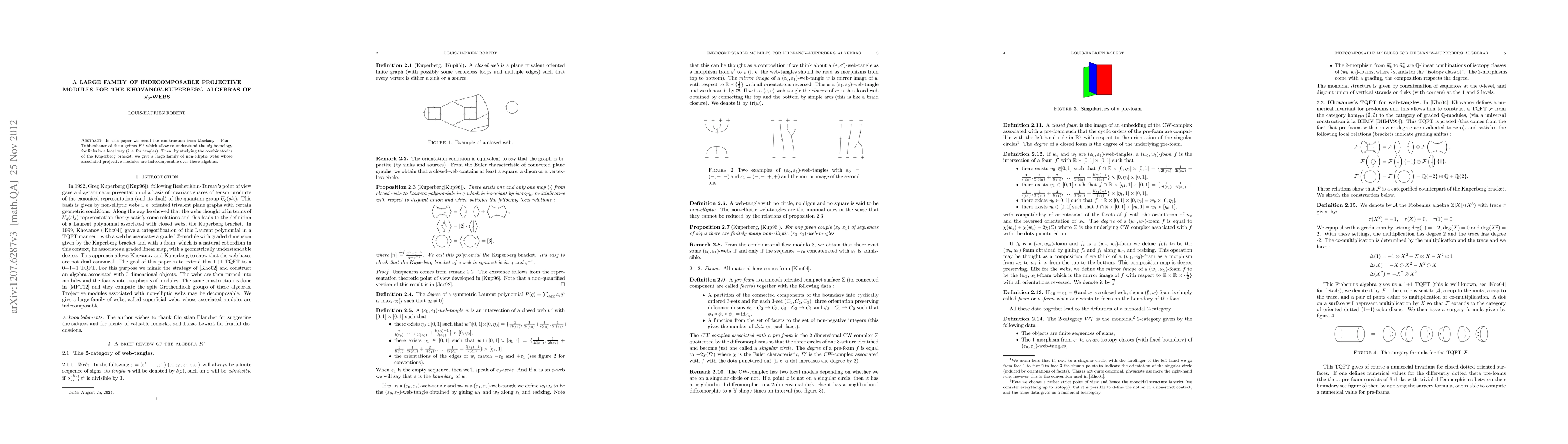 We recall a construction of Mackaay, Pan and Tubbenhauer of the algebras $K^{\epsilon}$ which allow to understand the $sl_3$ homology for links in a local way (i.e. for tangles). Then, by studying the combinatorics of the Kuperberg bracket, we give a large family of non-elliptic webs whose associated projective $K^{\epsilon}$-modules are indecomposable.