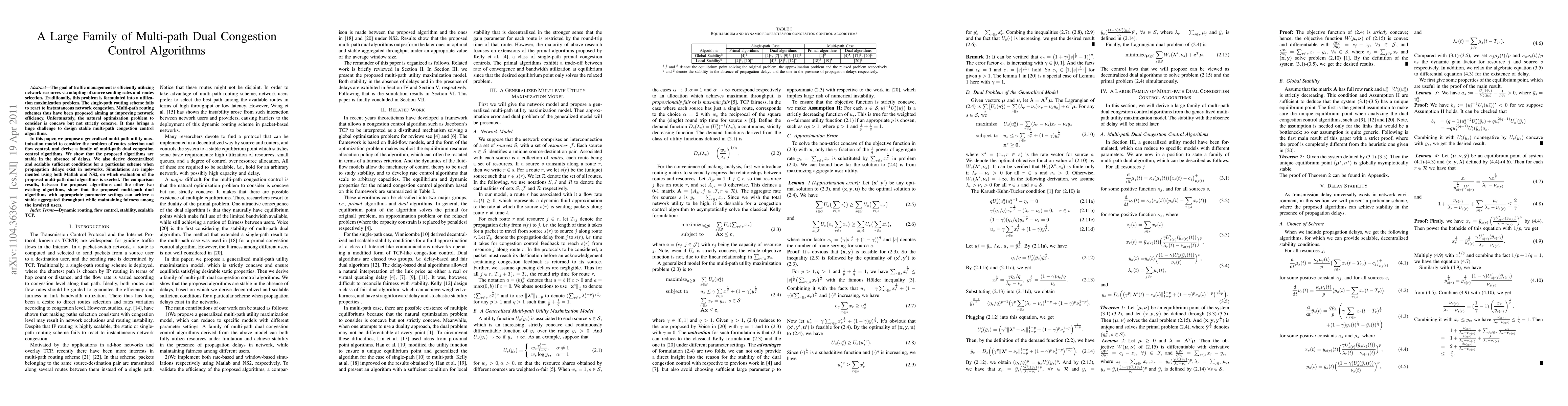 This paper proposes a generalized multi-path utility maximization model for congestion control and introduces a family of multi-path dual congestion control algorithms that are stable without delays. The study also provides decentralized and scalable conditions for stability with delays, and simulation results show improved throughput and fairness compared to existing algorithms.